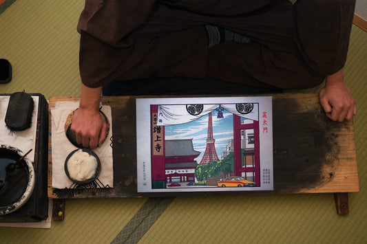 Captivated by watching his grandfather print woodblock prints, Nobuto pursued a career in woodblock printing himself keeping the tradition alive.