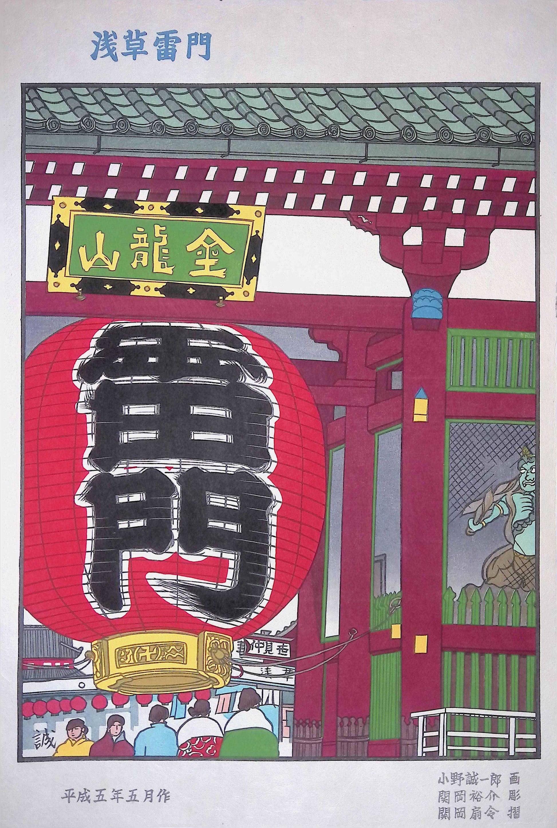 Artists, woodblock carvers, and woodblock printers work closely together at Sekioka Woodblock Printing Studio. For example, after a printer receives a private order for a set of senshafuda (small prints to attach to shrines featuring the customer’s name (now more commonly used as business cards)), the printer will either approach an artist or create the design himself/herself based on the client’s design requirements. After approval, the printer provides the carver with the complete design, color designation, and outlines for the senshafuda.