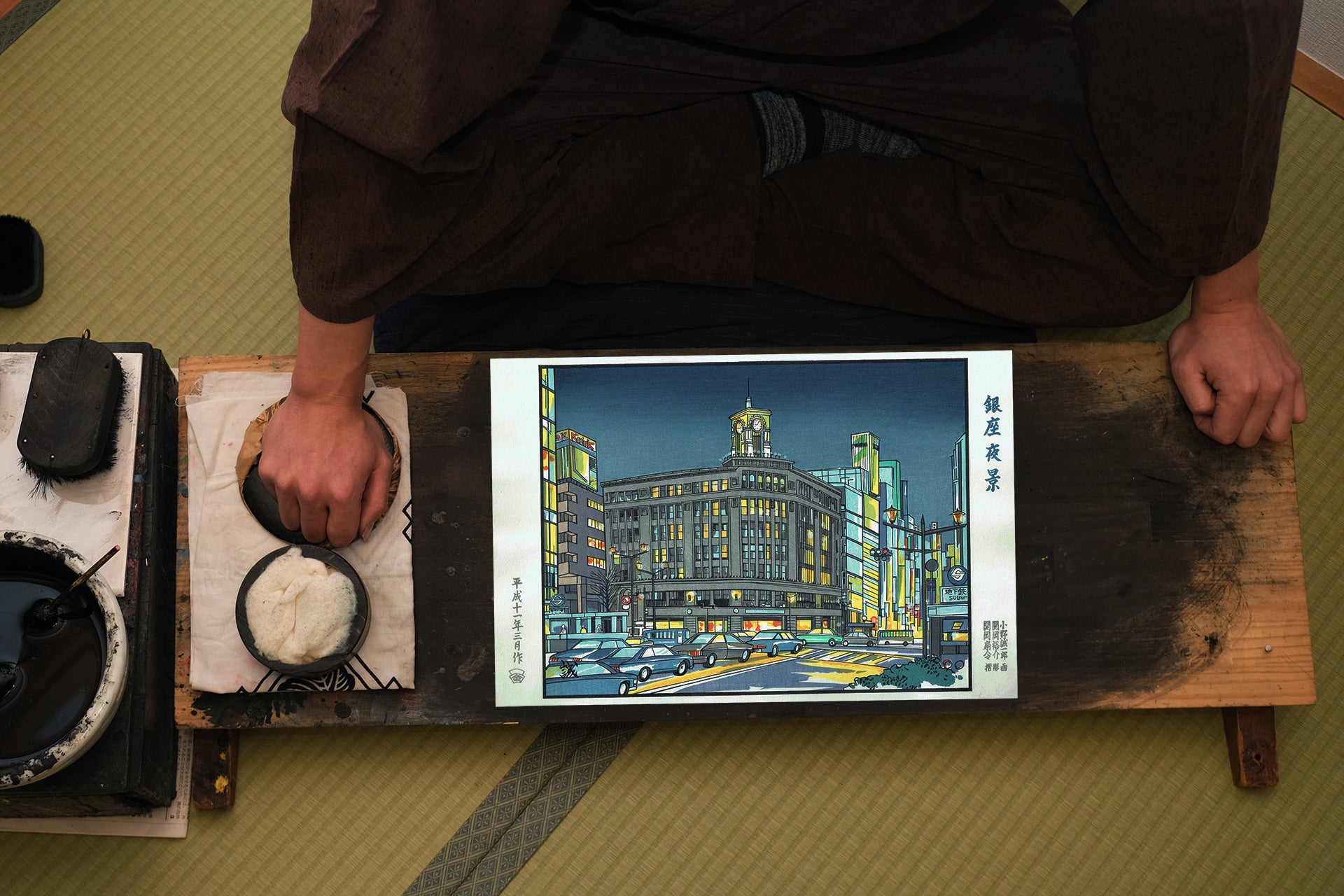 The production of a woodblock print through this method can only succeed with a streamlined process and good teamwork. The Arakawa Artisan Training Project facilitates this process by introducing students to each other and having them complete the same training. The carvers and printers at Sekioka Woodblock Printing Studio completed their training around the same time, and one of the program’s teachers is also a printer and artist for the Sekioka Studio.