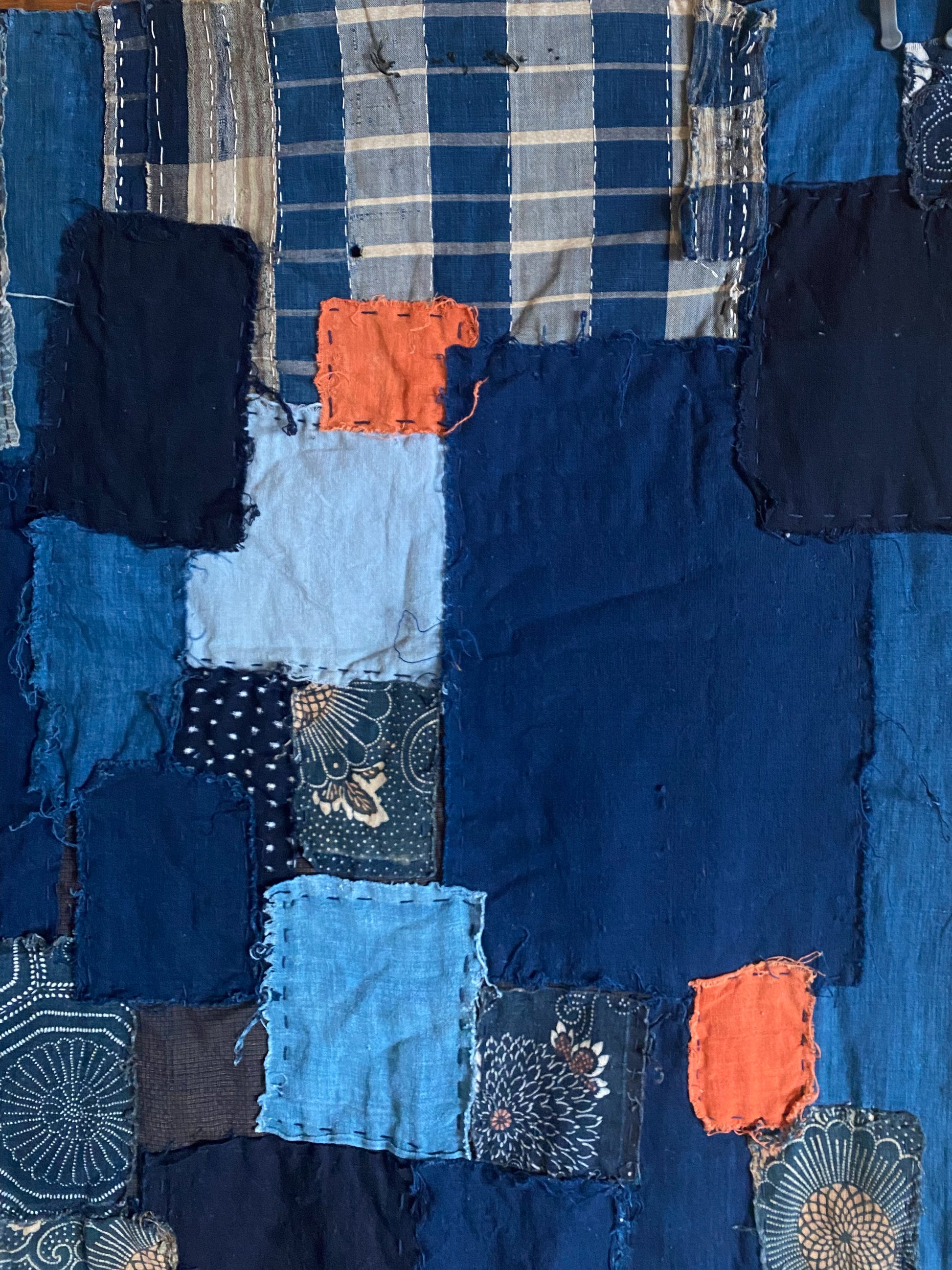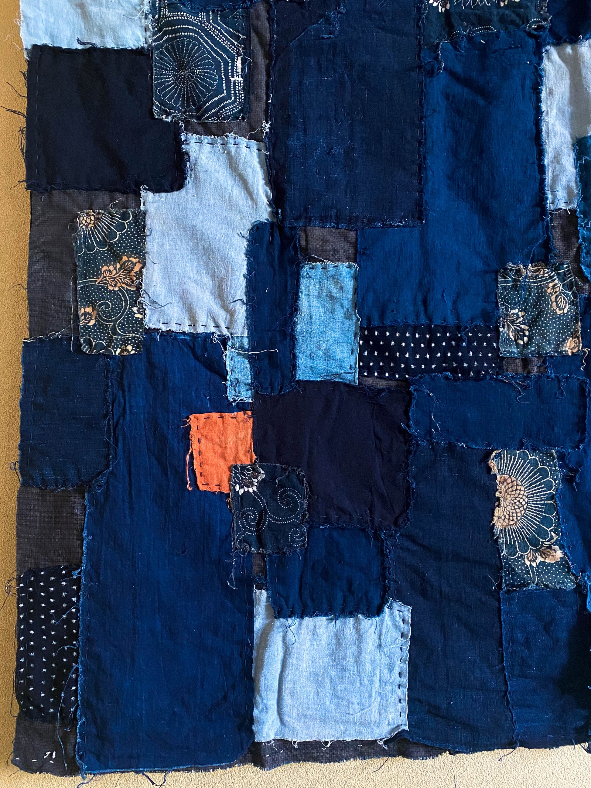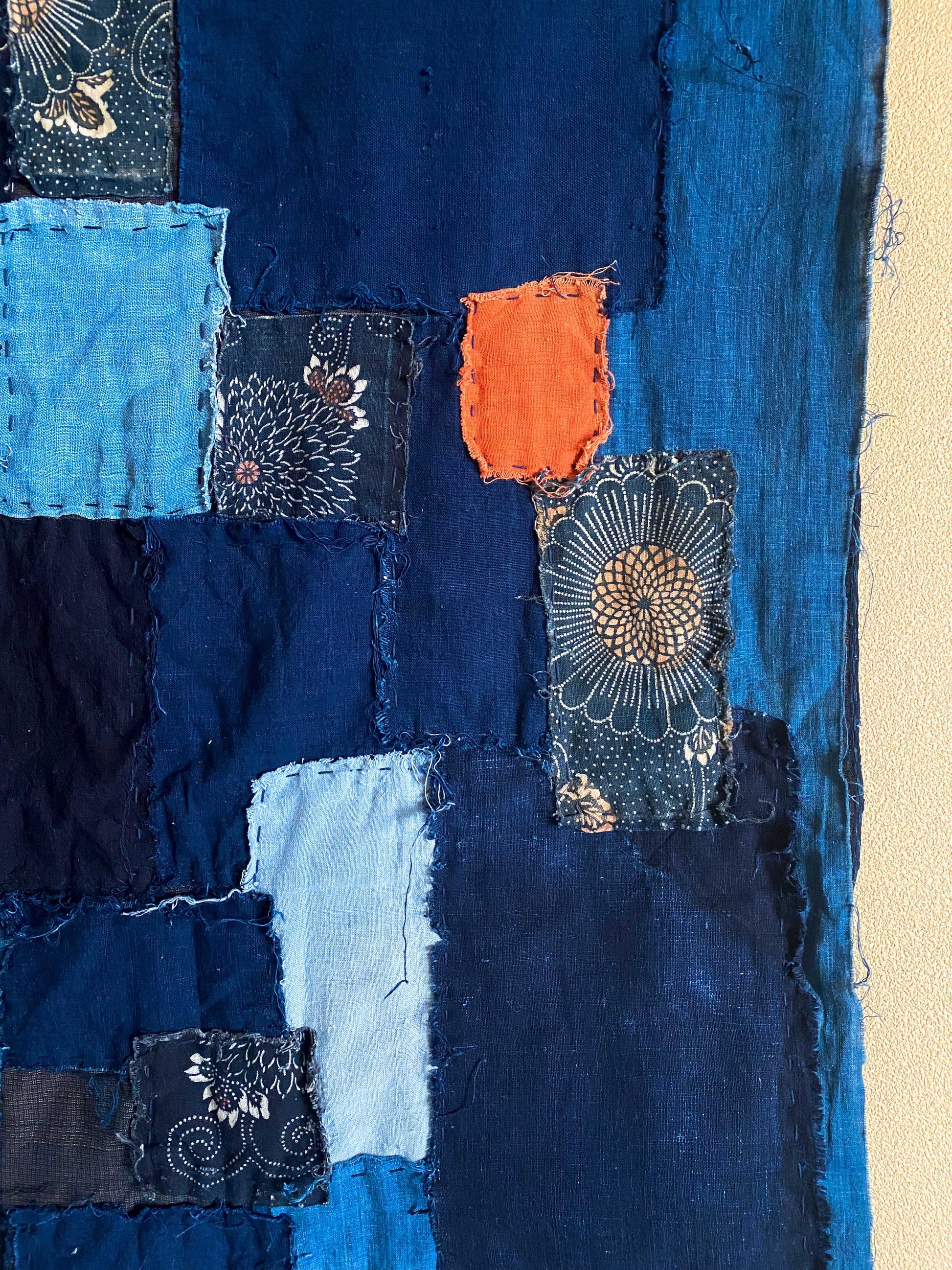 This particular fabric was used as a futonji, a cover on top of the traditional Japanese bedding containing 4 rows of handspun cotton. Due to its many repairs it has been used frequently and passed over from generation to generation.