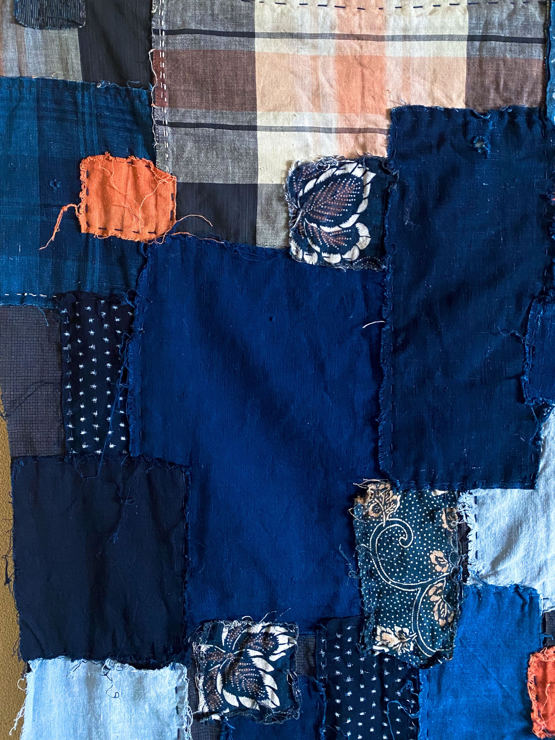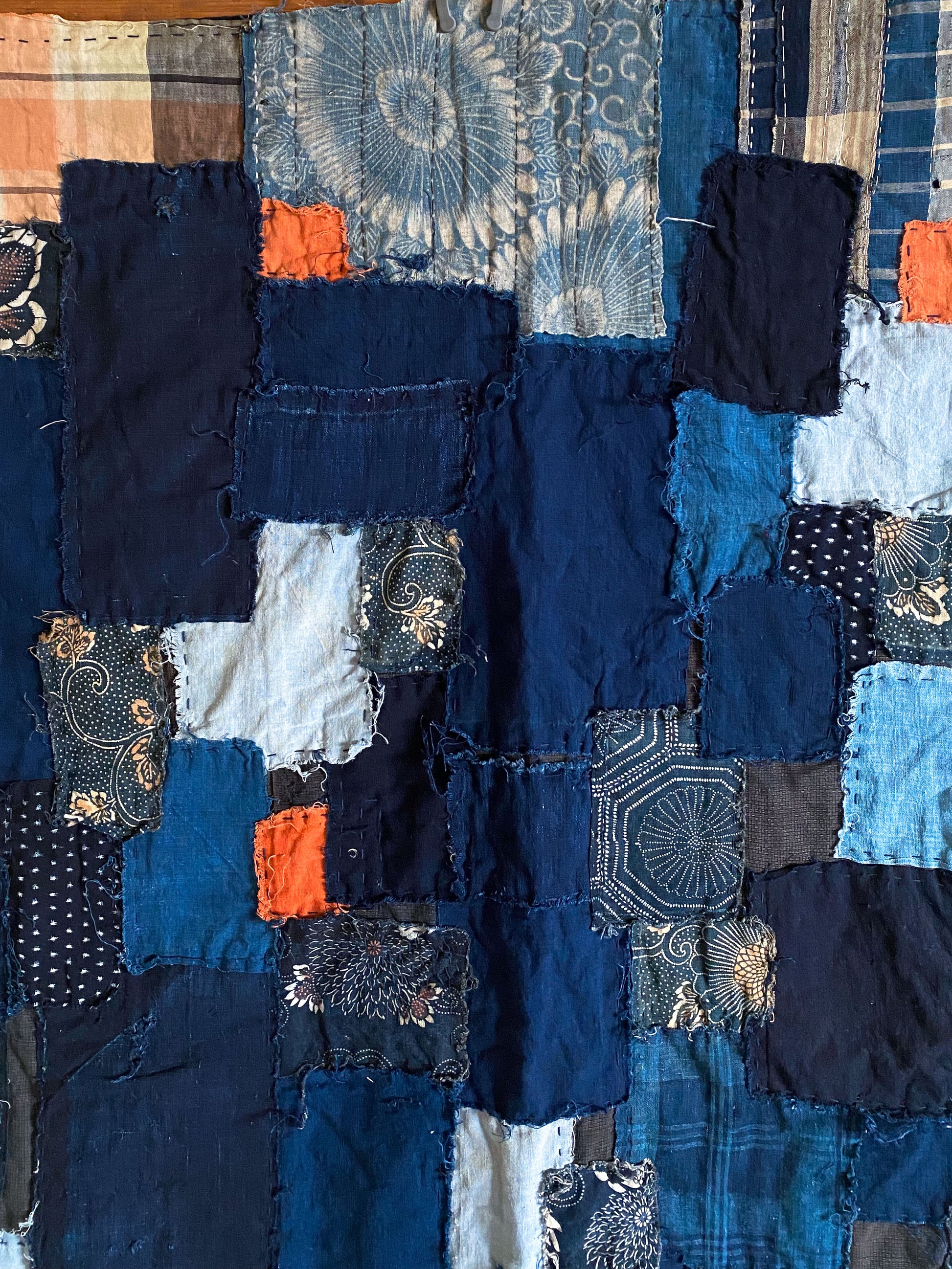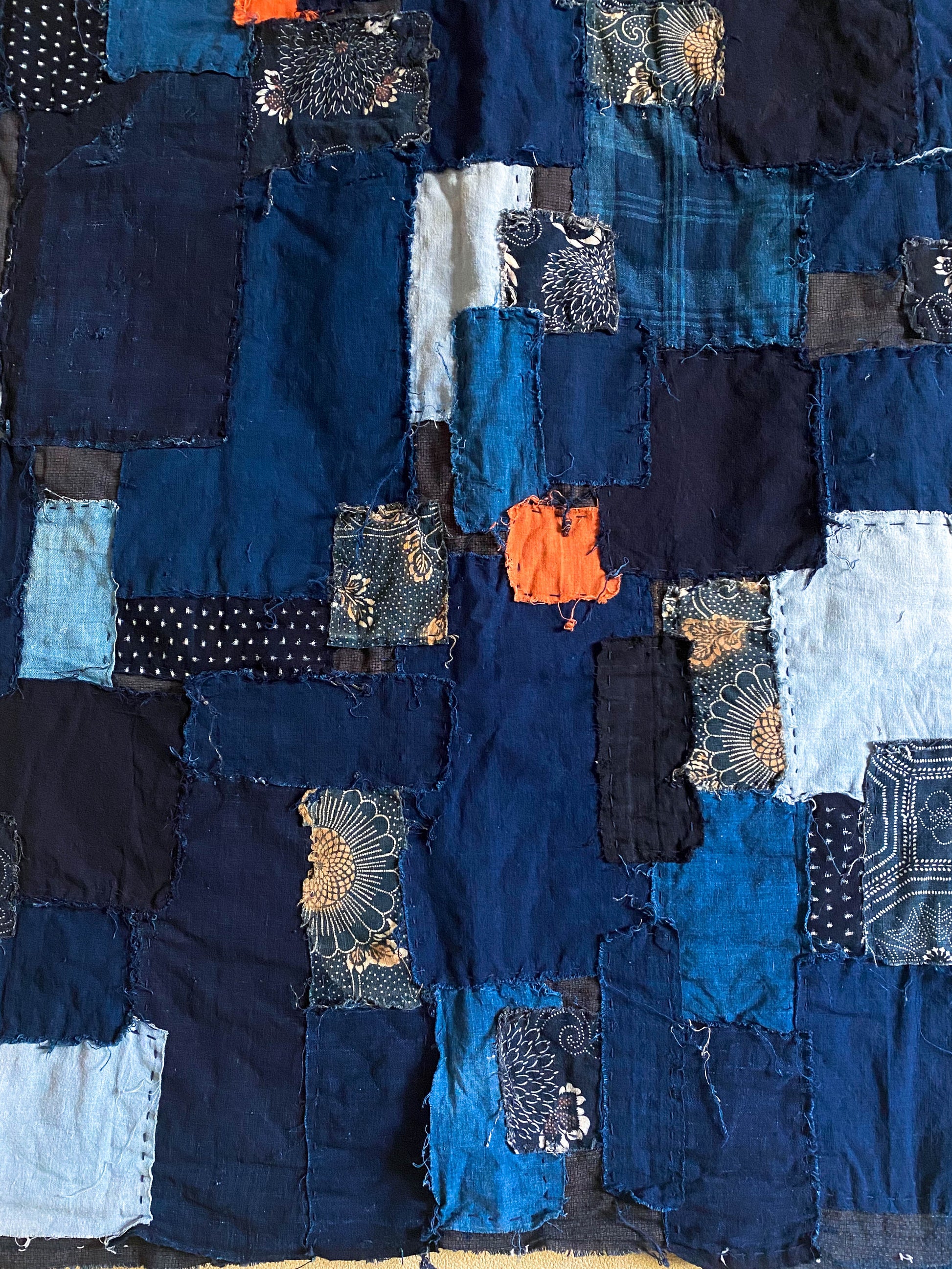 This particular fabric was used as a futonji, a cover on top of the traditional Japanese bedding containing 4 rows of handspun cotton. Due to its many repairs it has been used frequently and passed over from generation to generation.