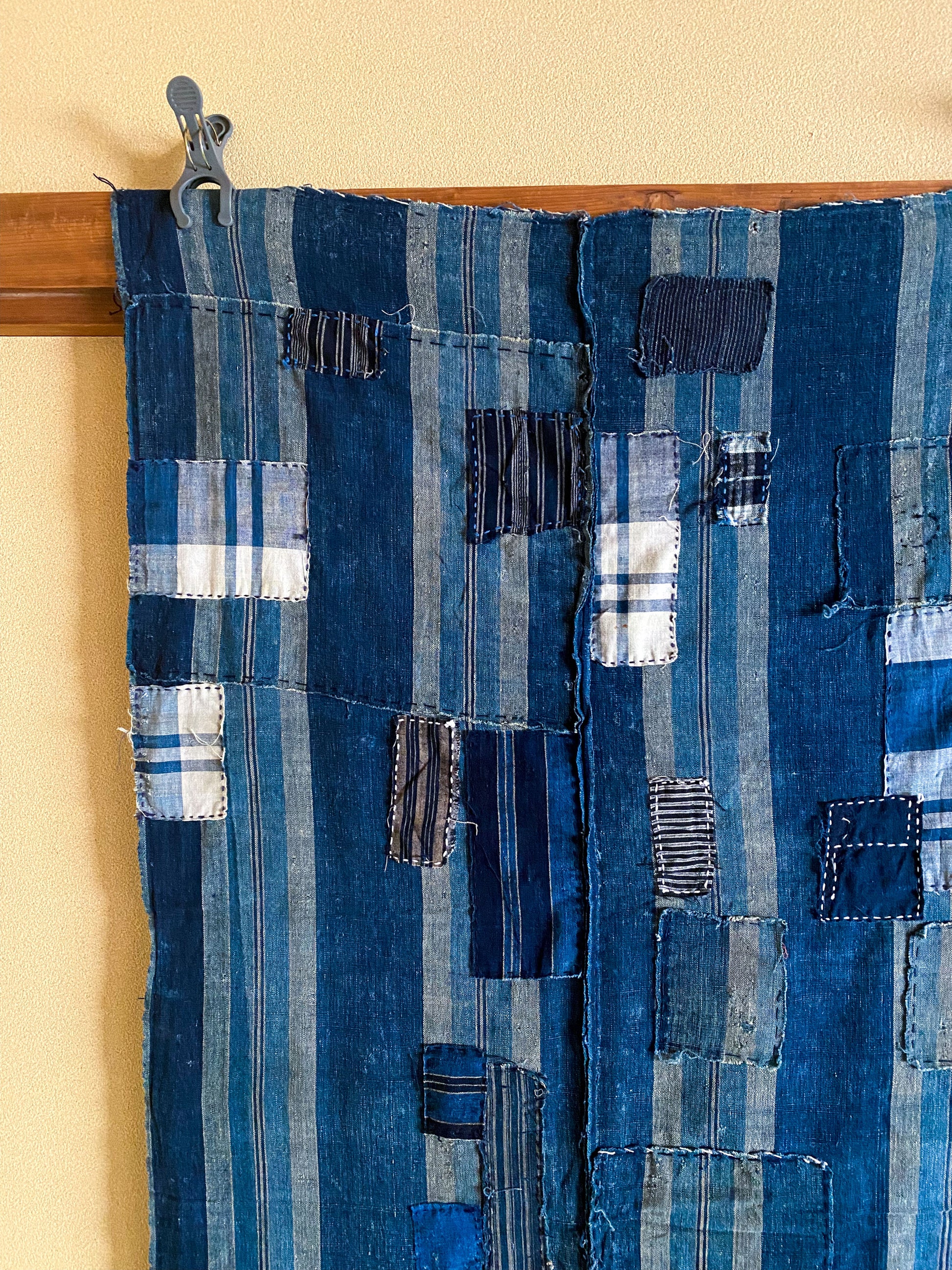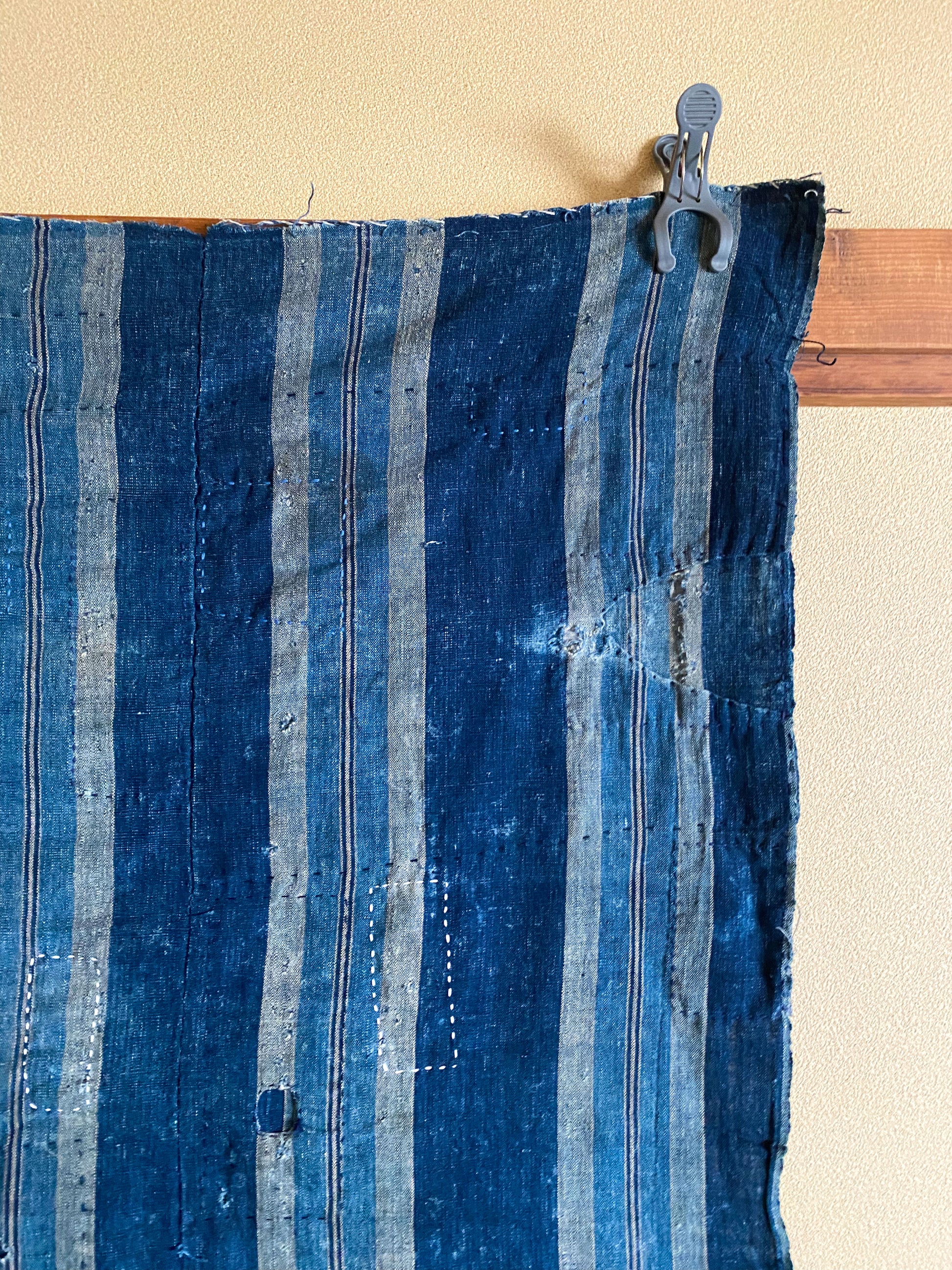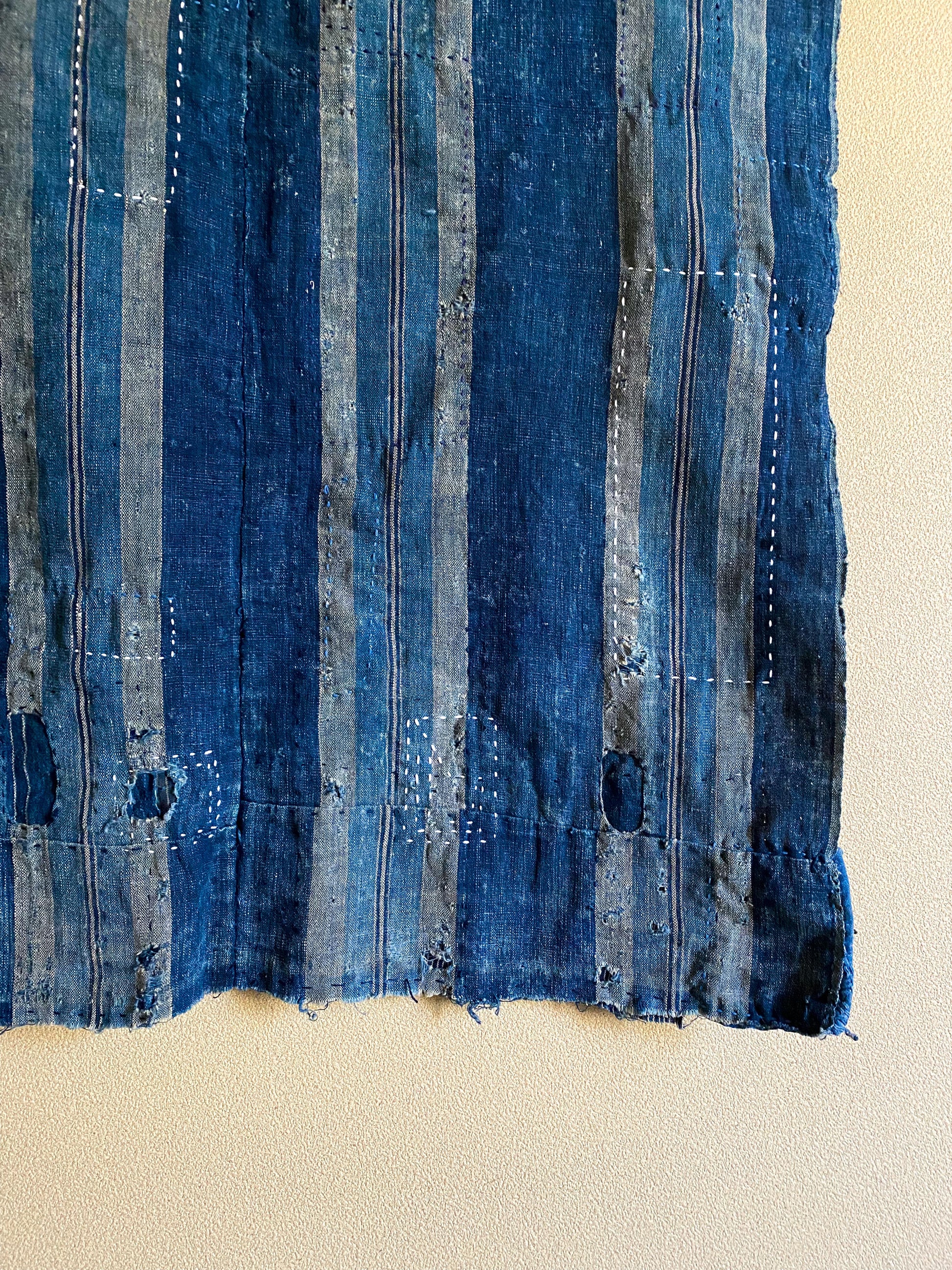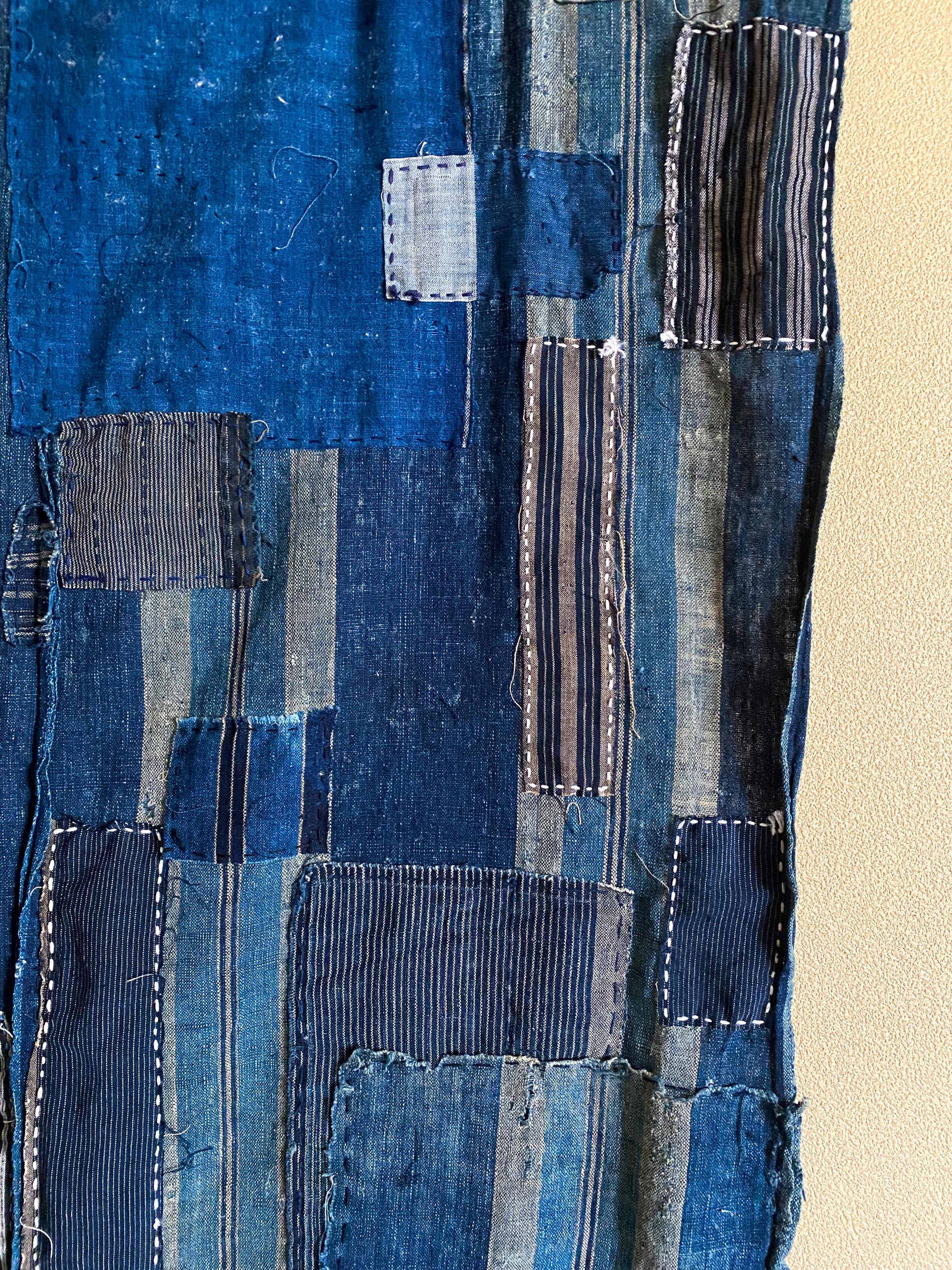 This particular fabric was used as a futonji, a cover on top of the traditional Japanese bedding containing 4 rows of handspun cotton. Due to its many repairs it has been used frequently and passed over from generation to generation.