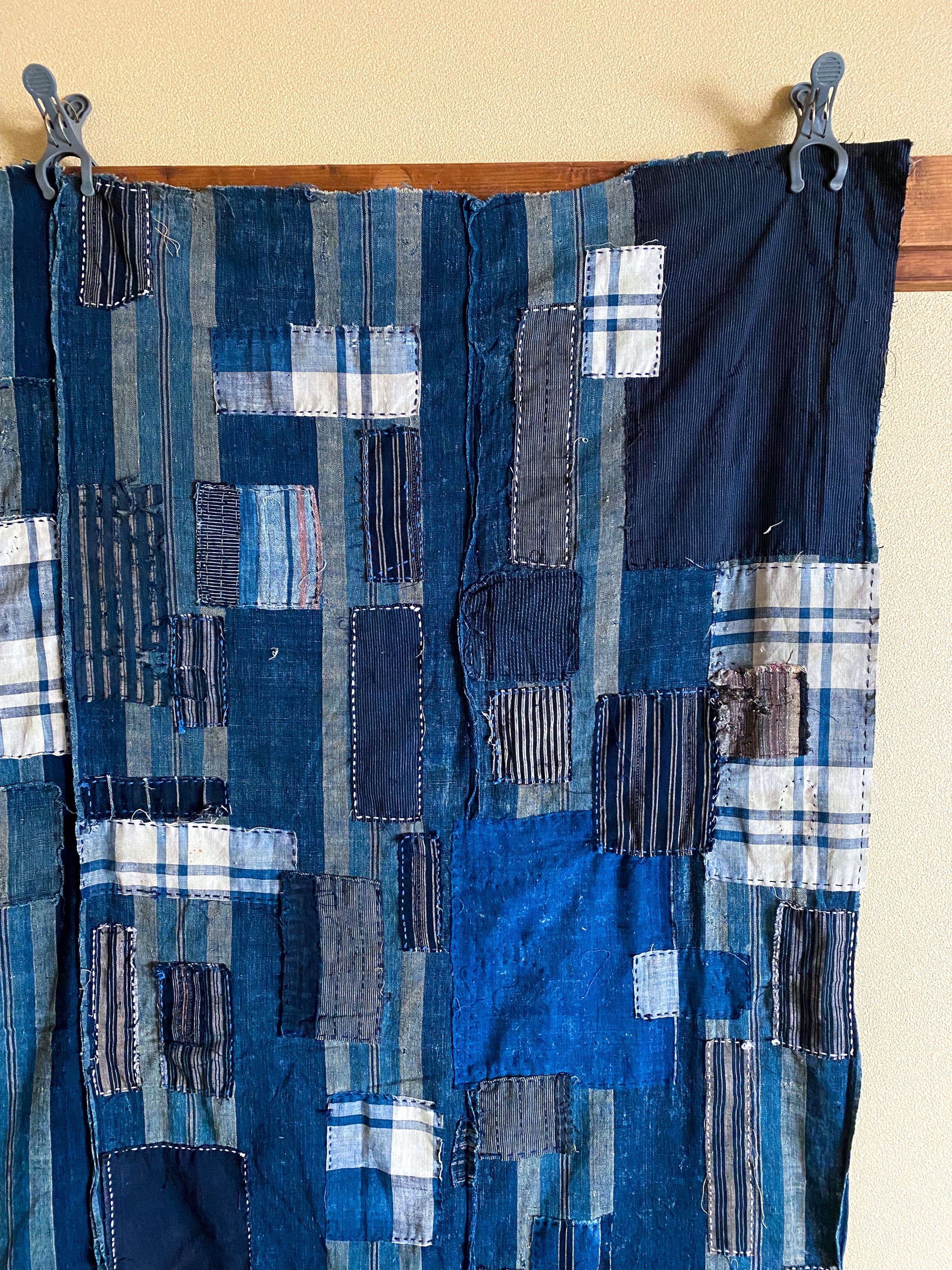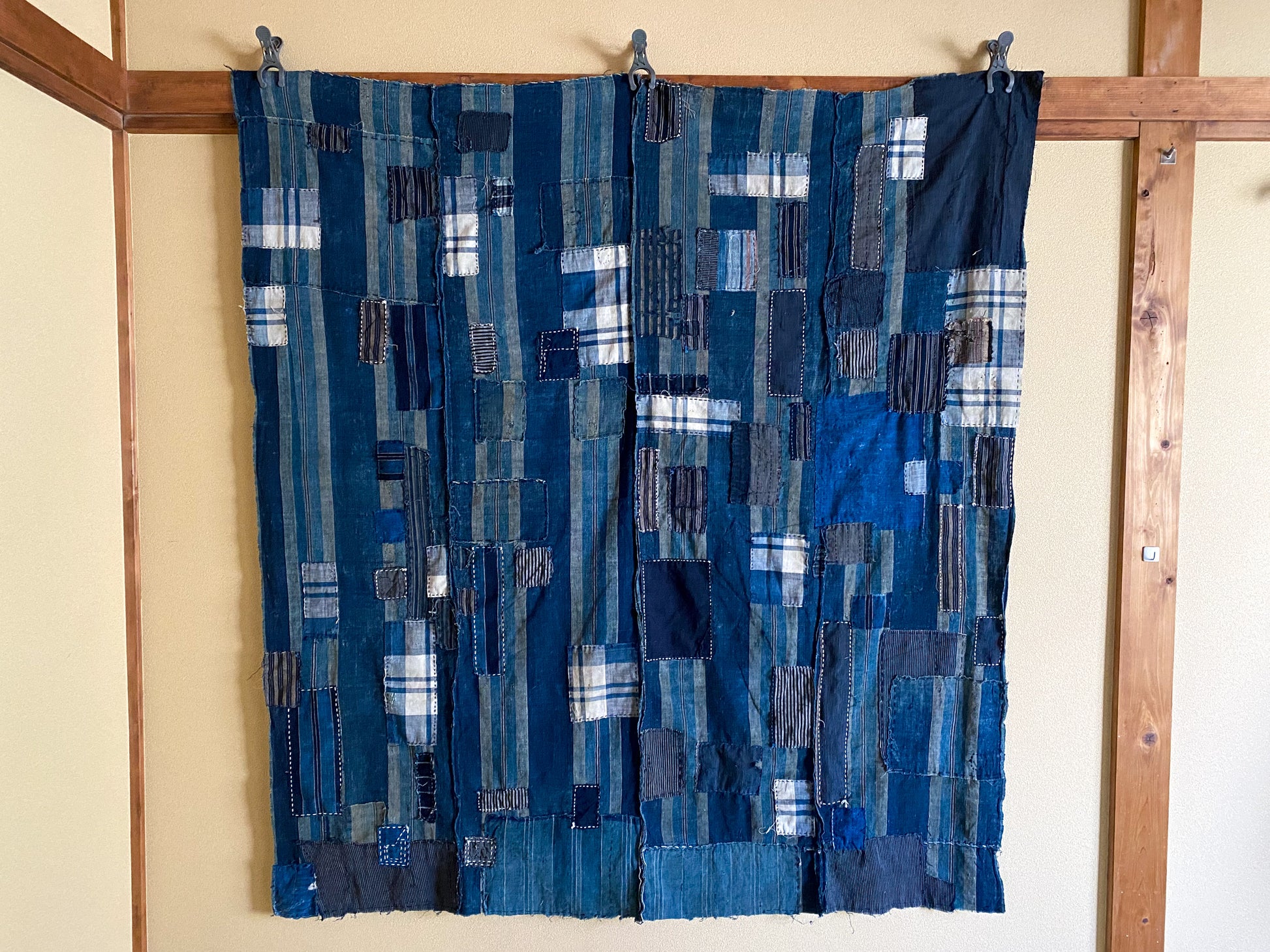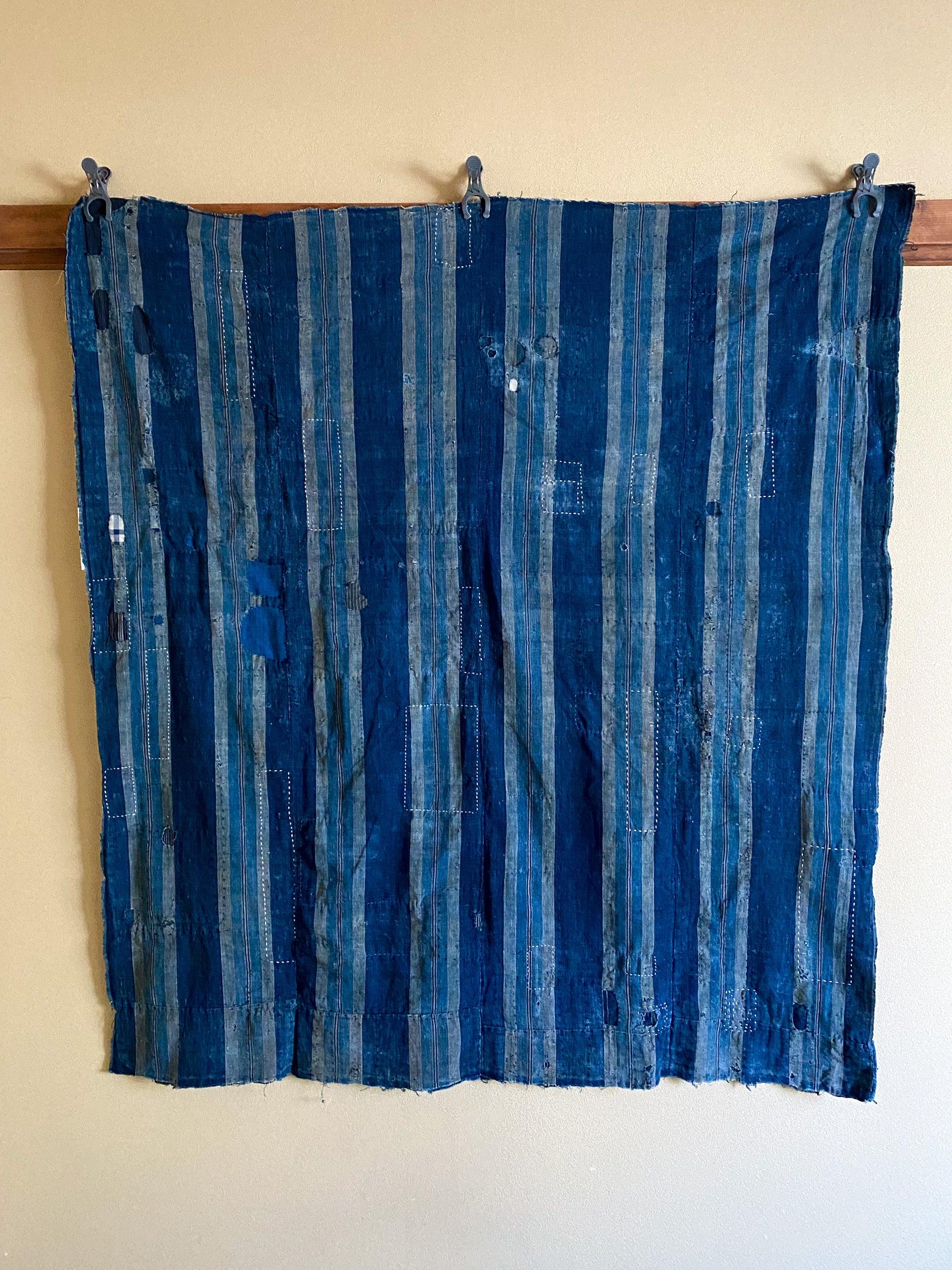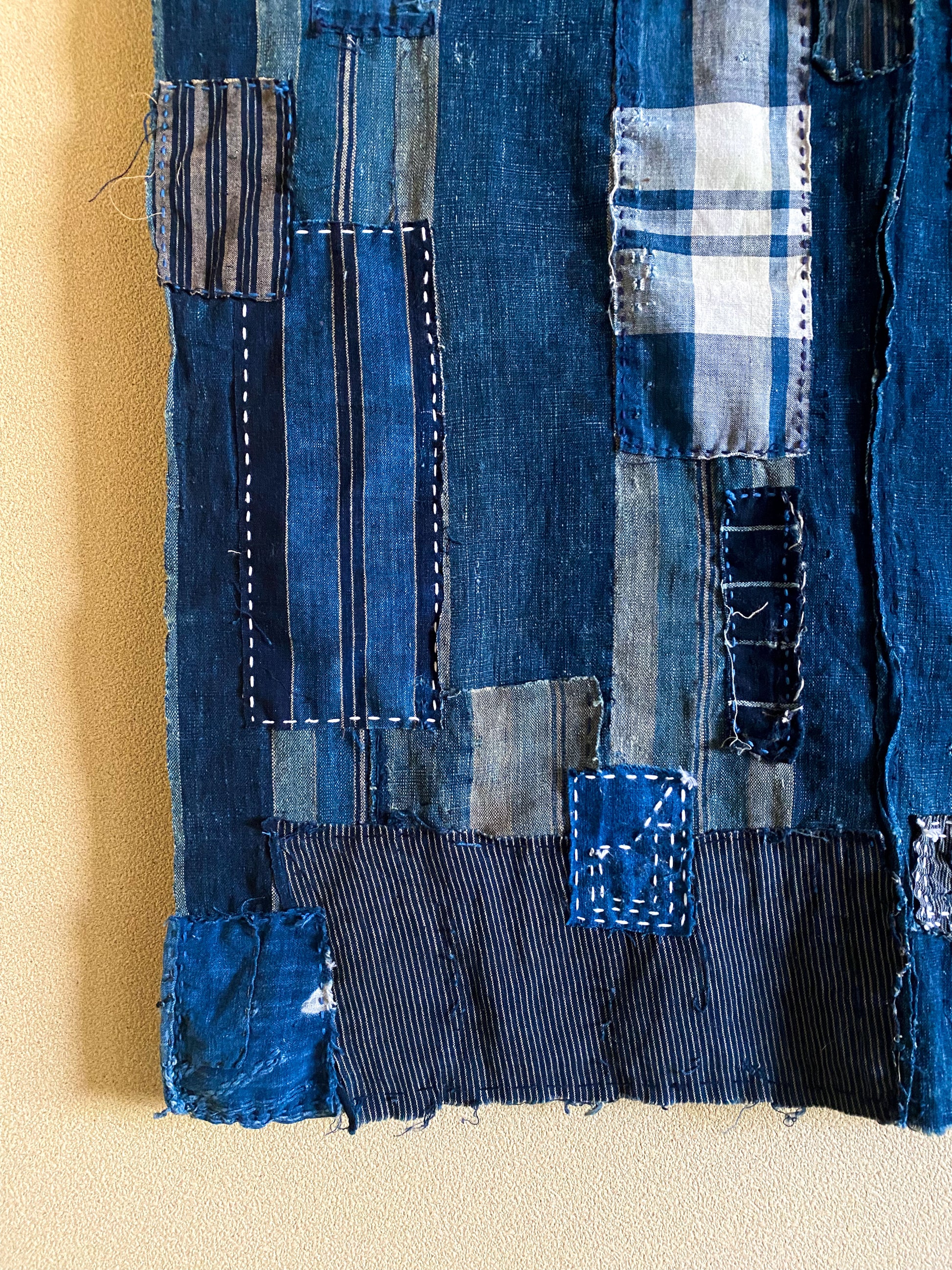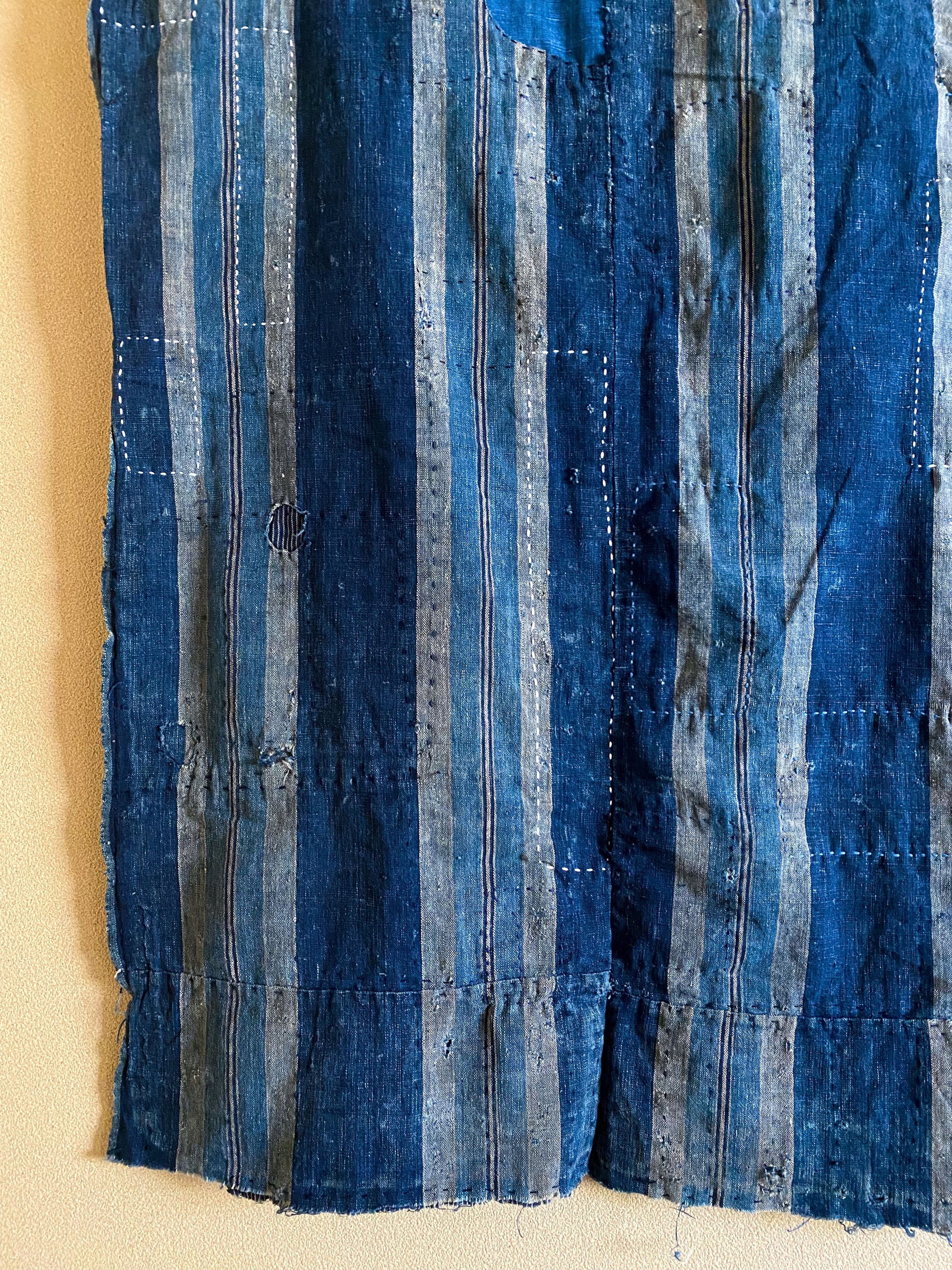 This particular fabric was used as a futonji, a cover on top of the traditional Japanese bedding containing 4 rows of handspun cotton. Due to its many repairs it has been used frequently and passed over from generation to generation.