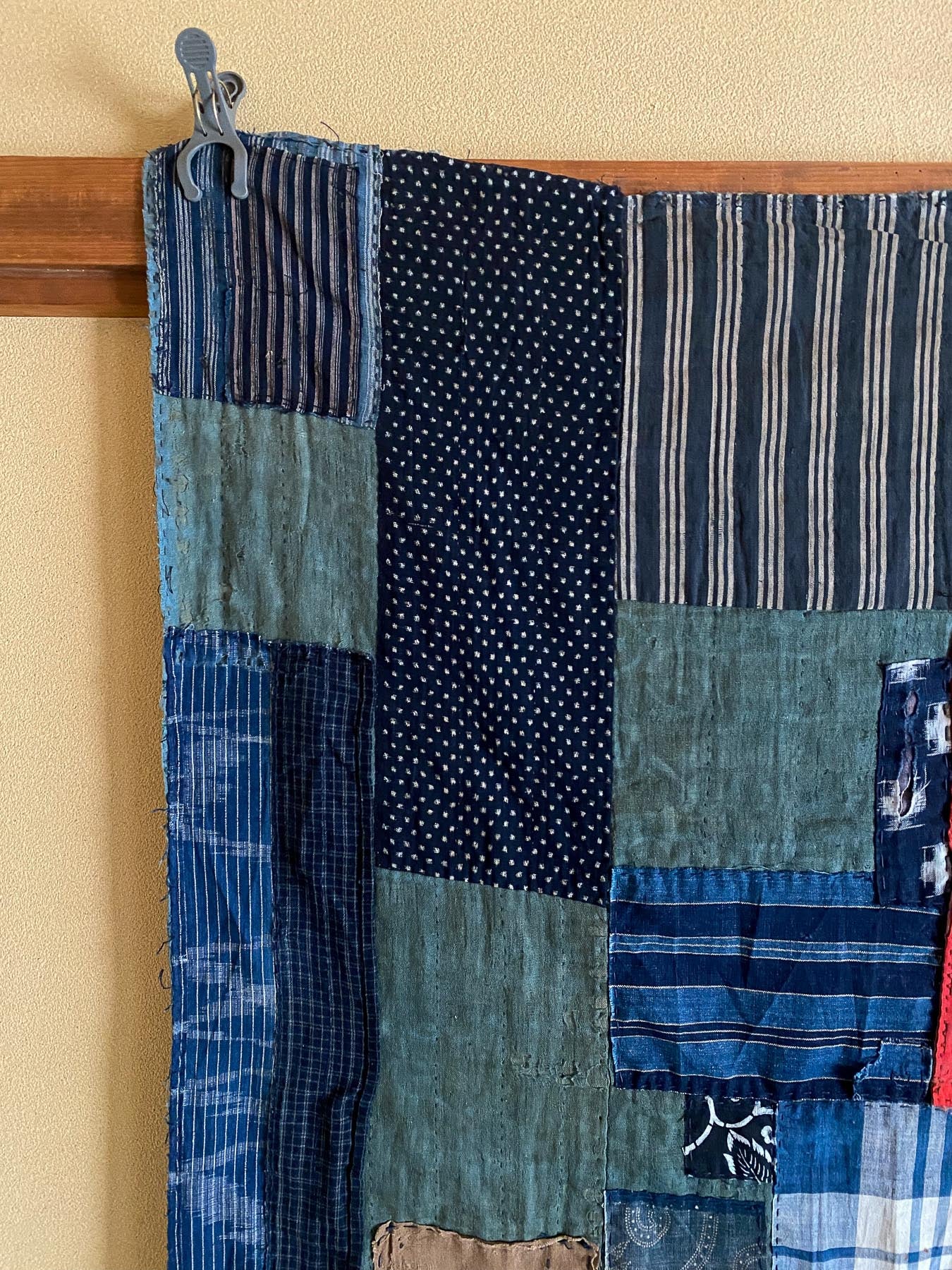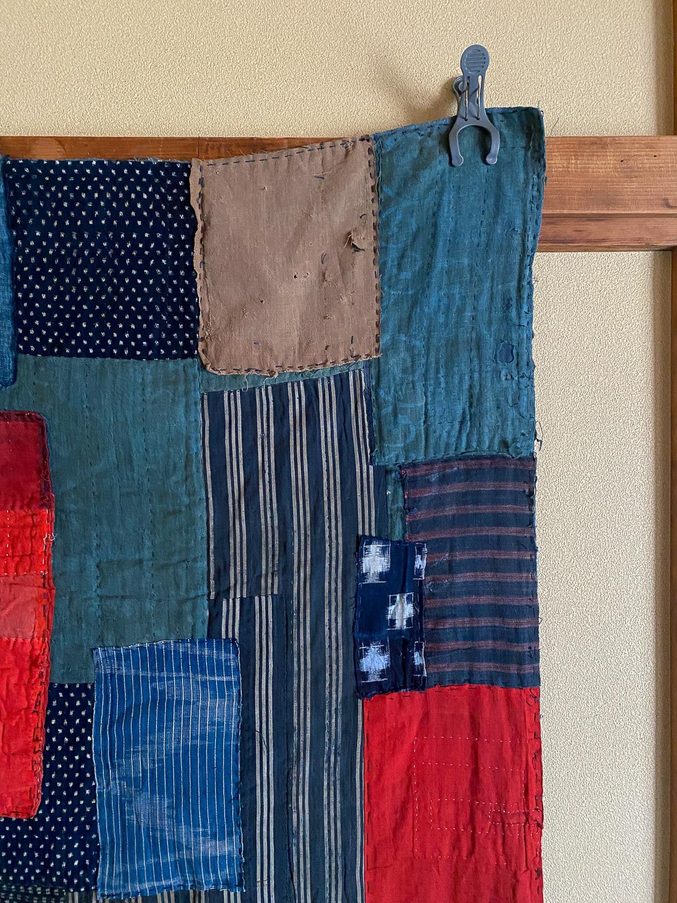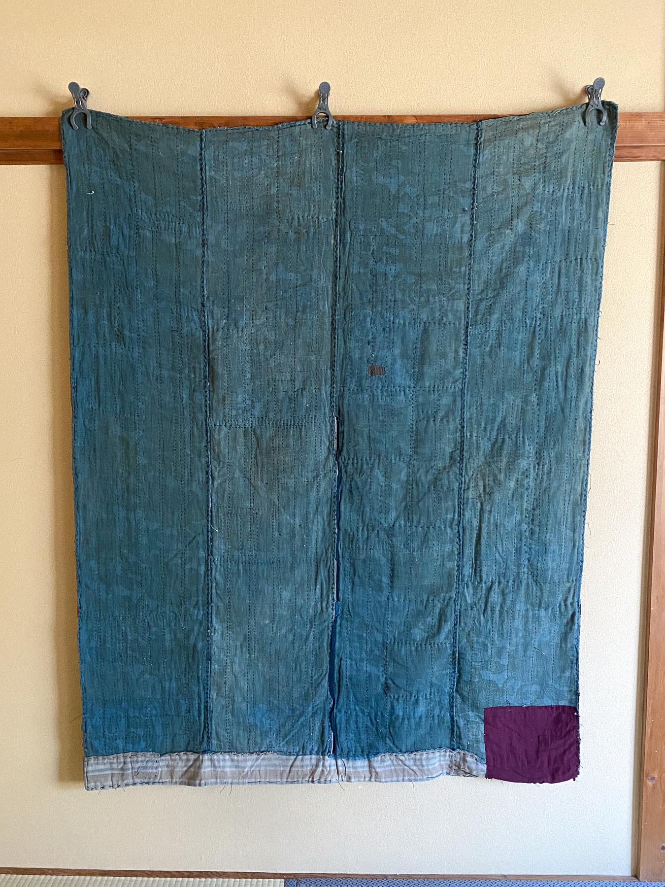 This particular fabric was used as a futonji, a cover on top of the traditional Japanese bedding containing 4 rows of handspun cotton. Due to its many repairs it has been used frequently and passed over from generation to generation.