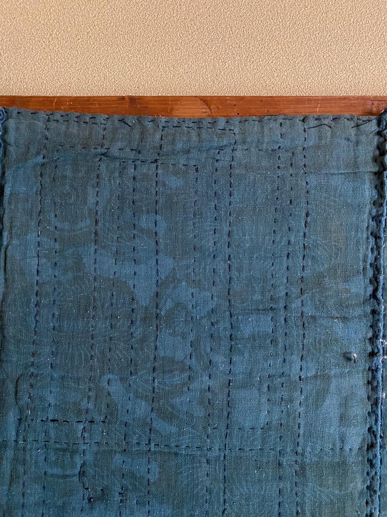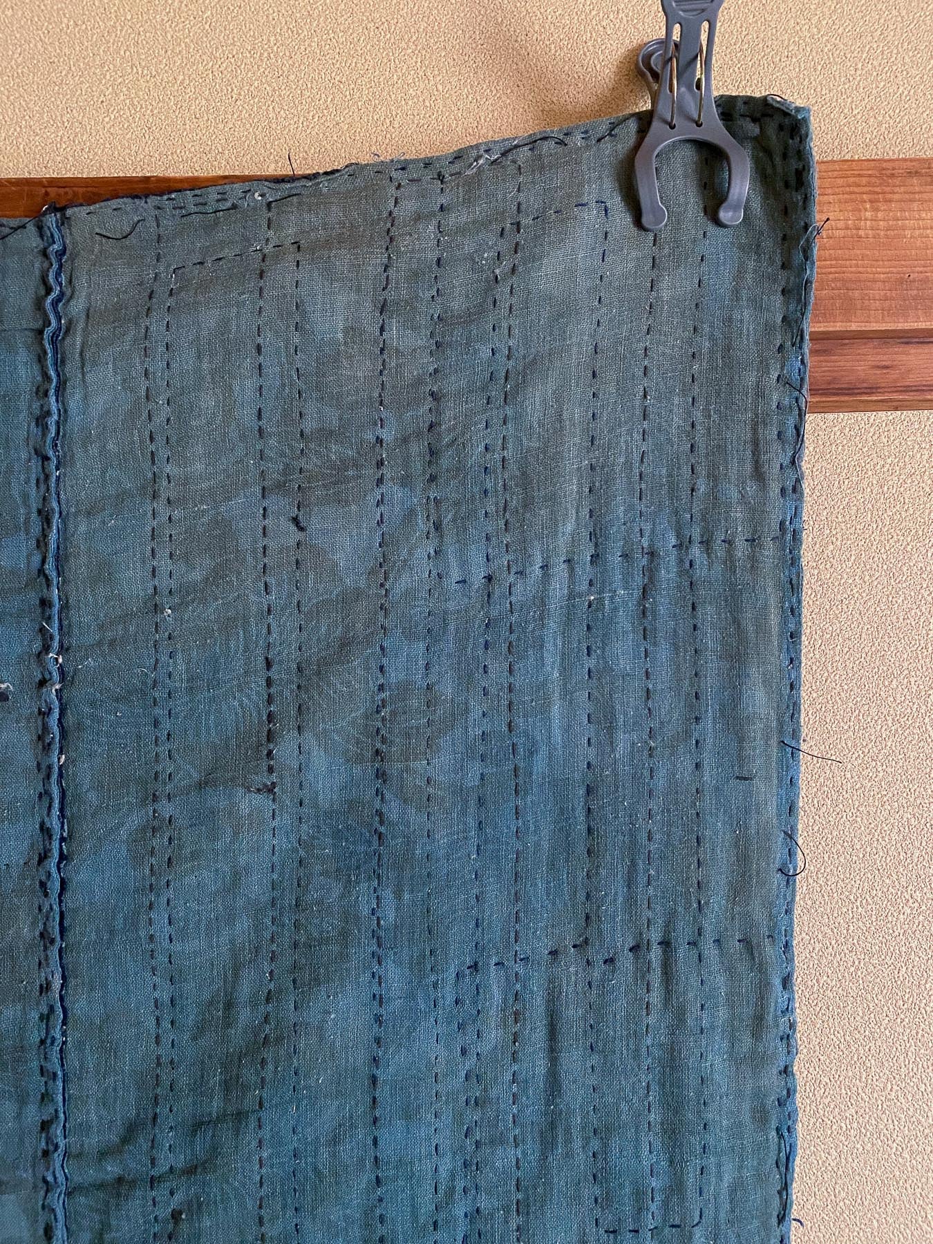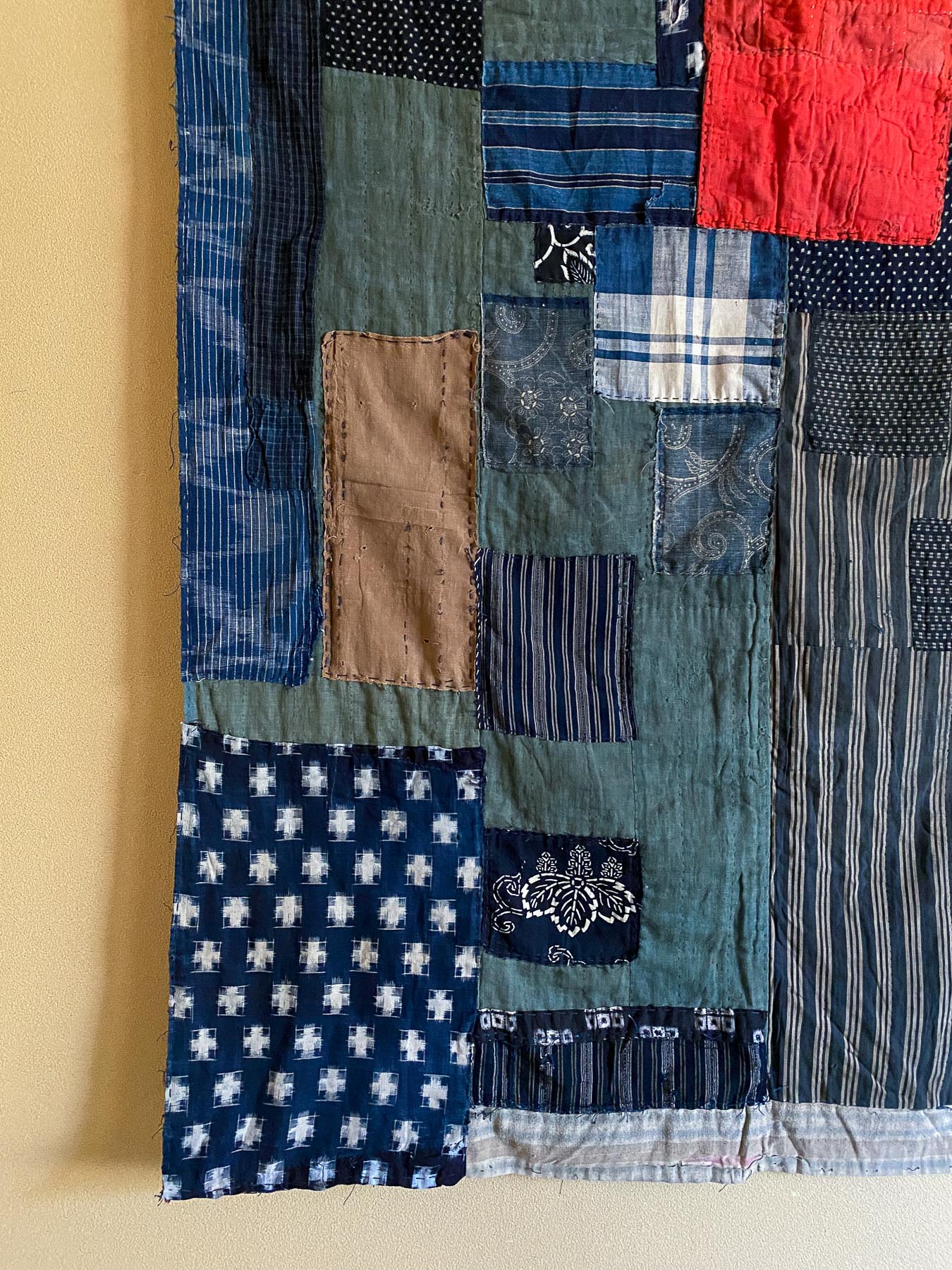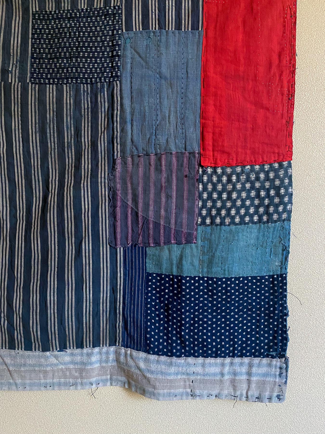 This particular fabric was used as a futonji, a cover on top of the traditional Japanese bedding containing 4 rows of handspun cotton. Due to its many repairs it has been used frequently and passed over from generation to generation.