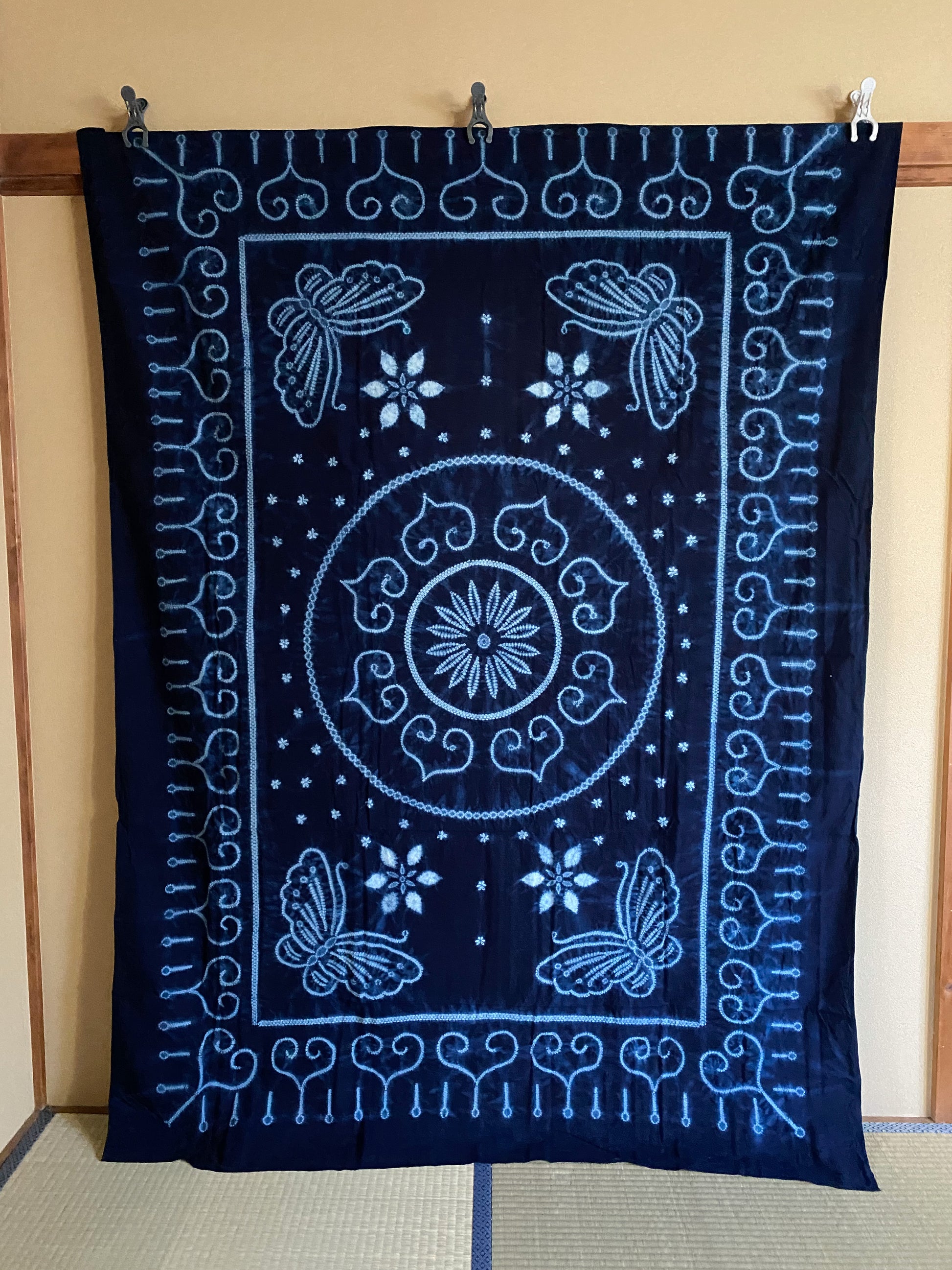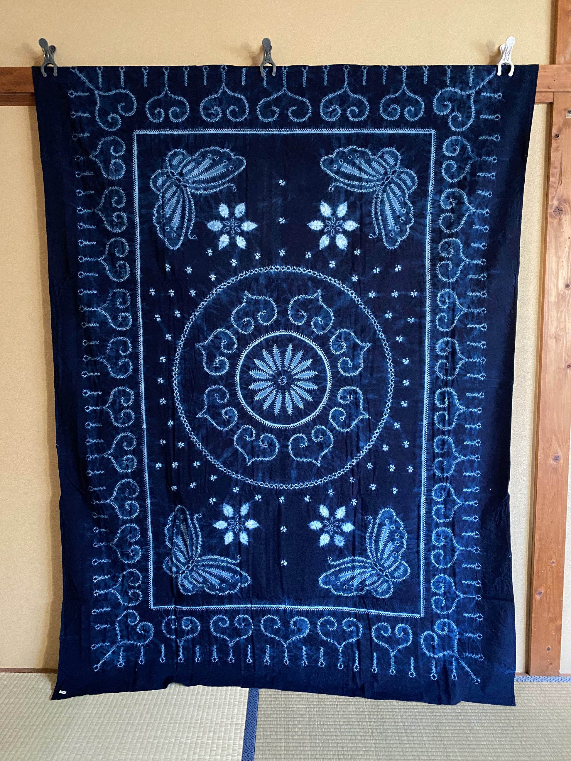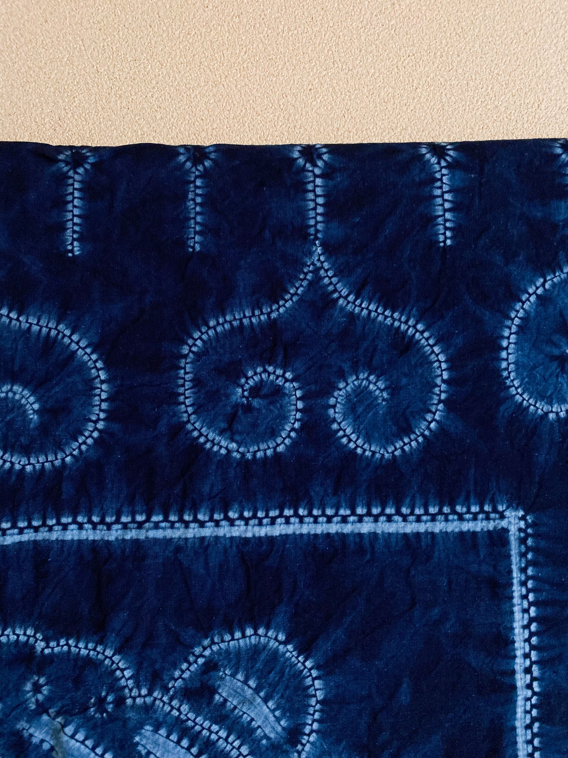 Japanese shibori is a manual resist dyeing technique to create patterns on textiles by squeezing or pressing the fabric. This can be done in multiple clever ways, by folding, stitching or stacking the fabric, originating from the Edo period.