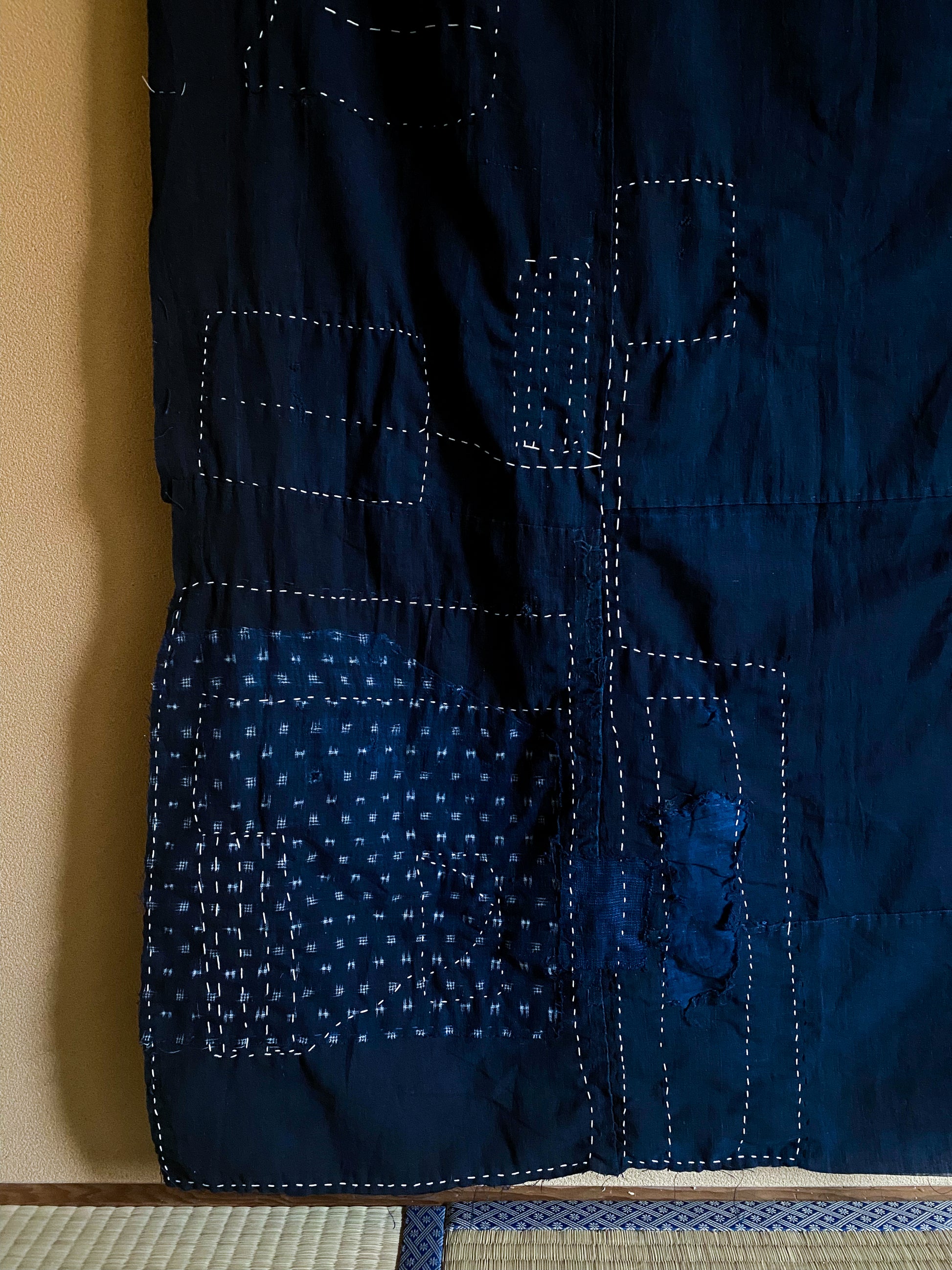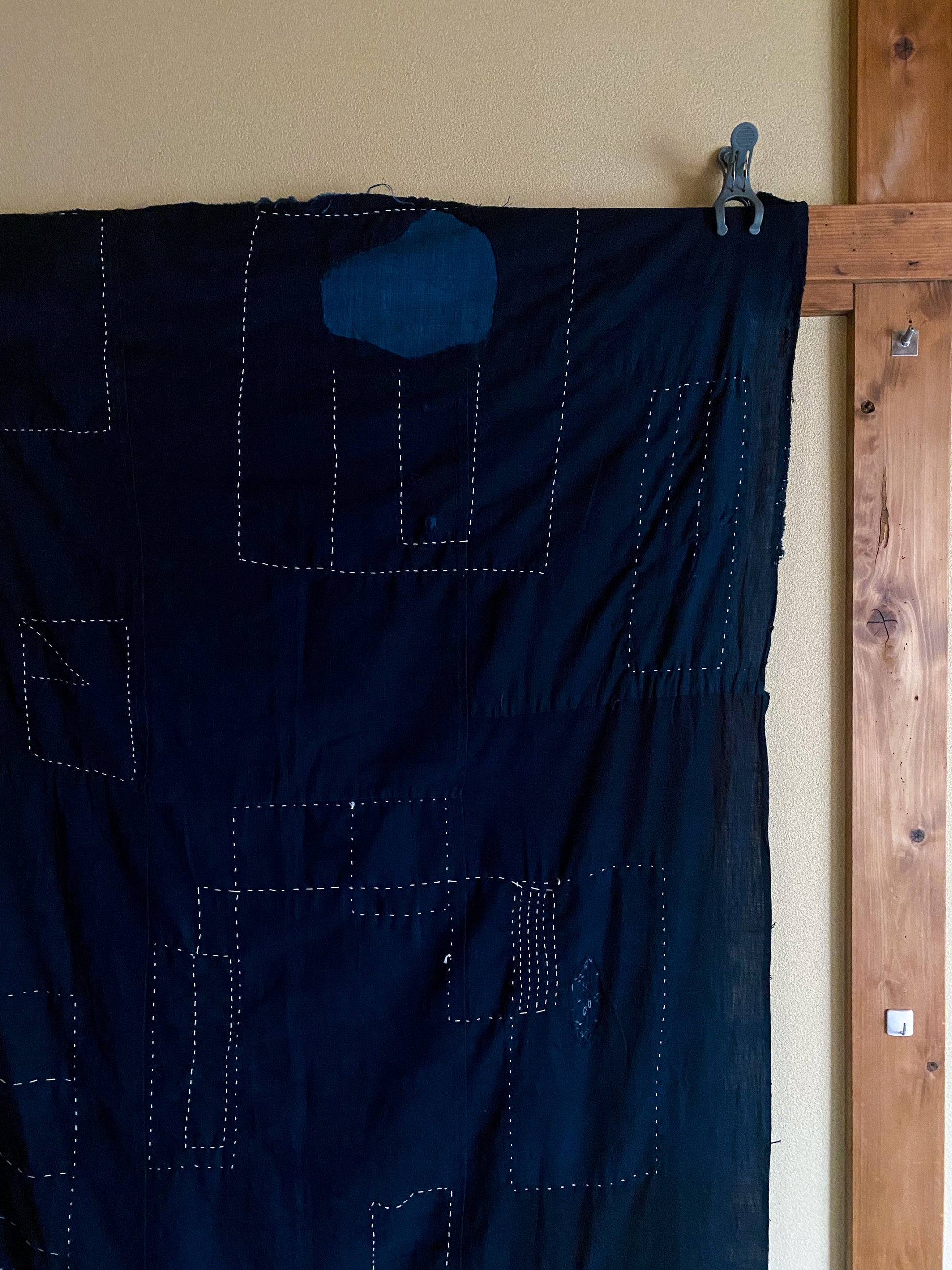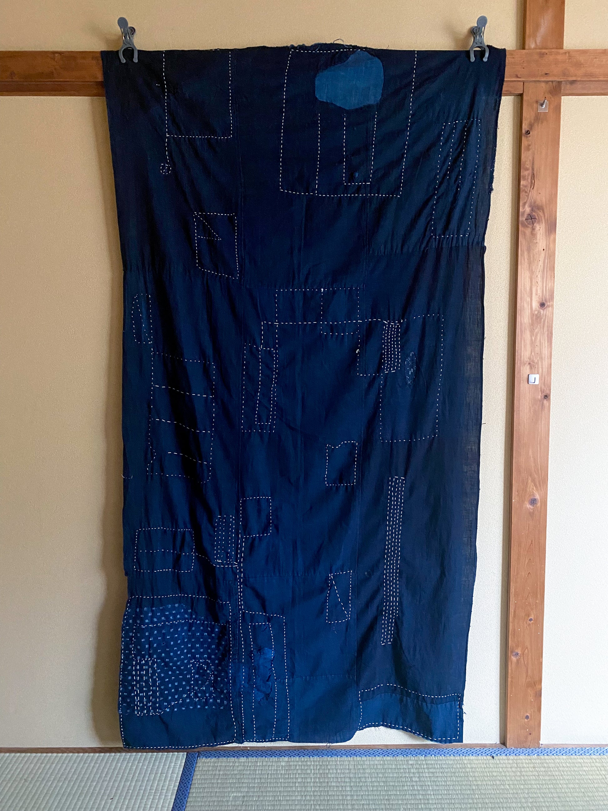 This particular fabric was used as a futonji, a cover on top of the traditional Japanese bedding containing 3 rows of handspun cotton. Due to its many repairs it has been used frequently and passed over from generation to generation.