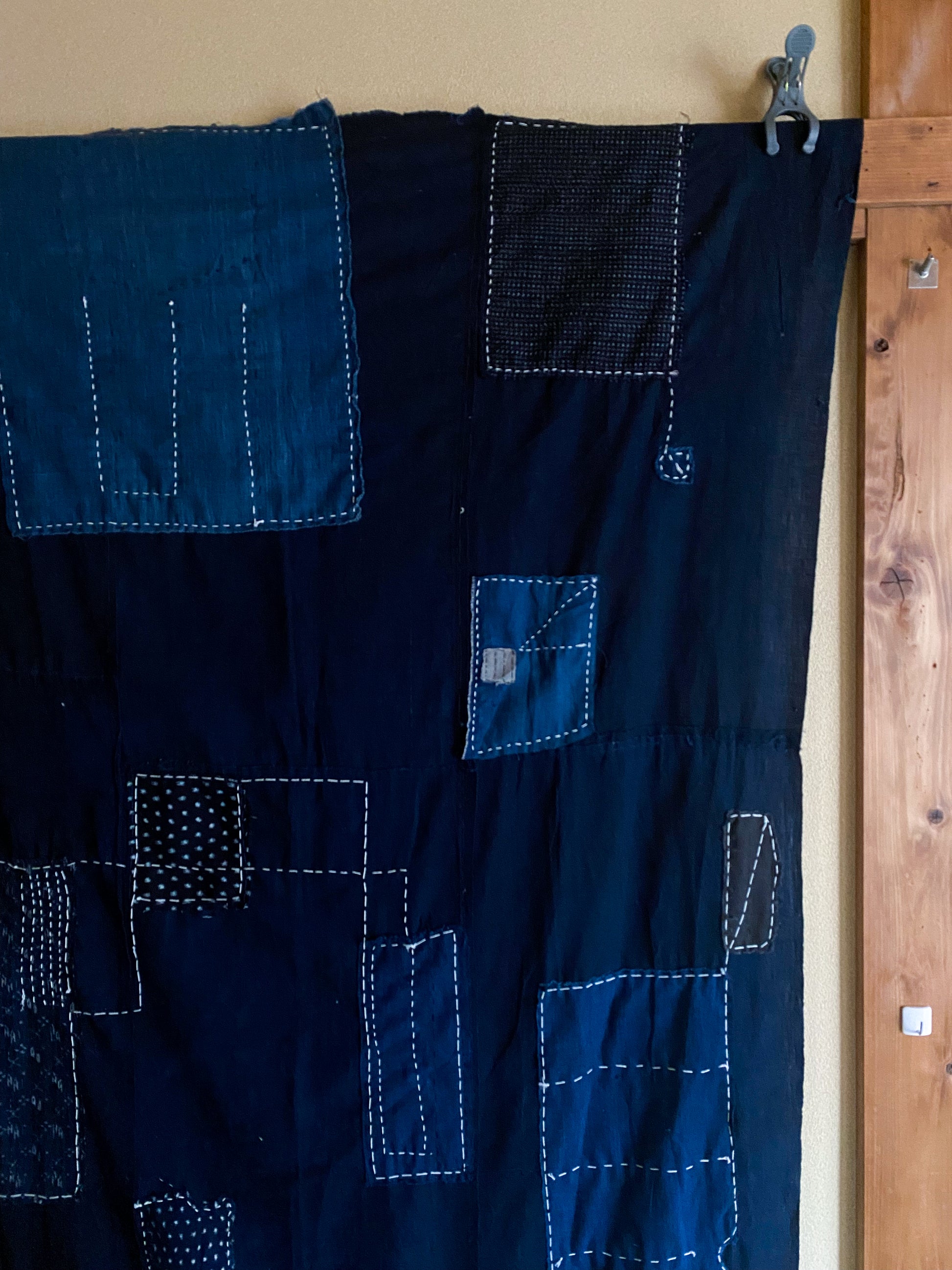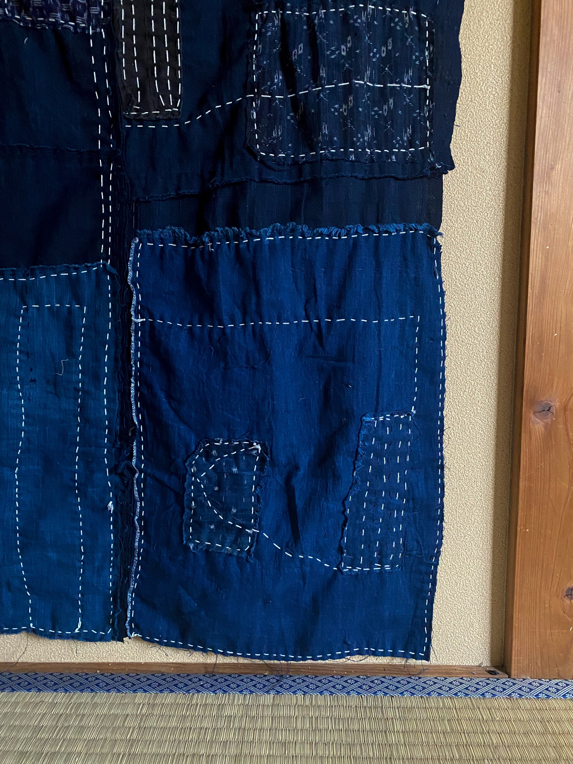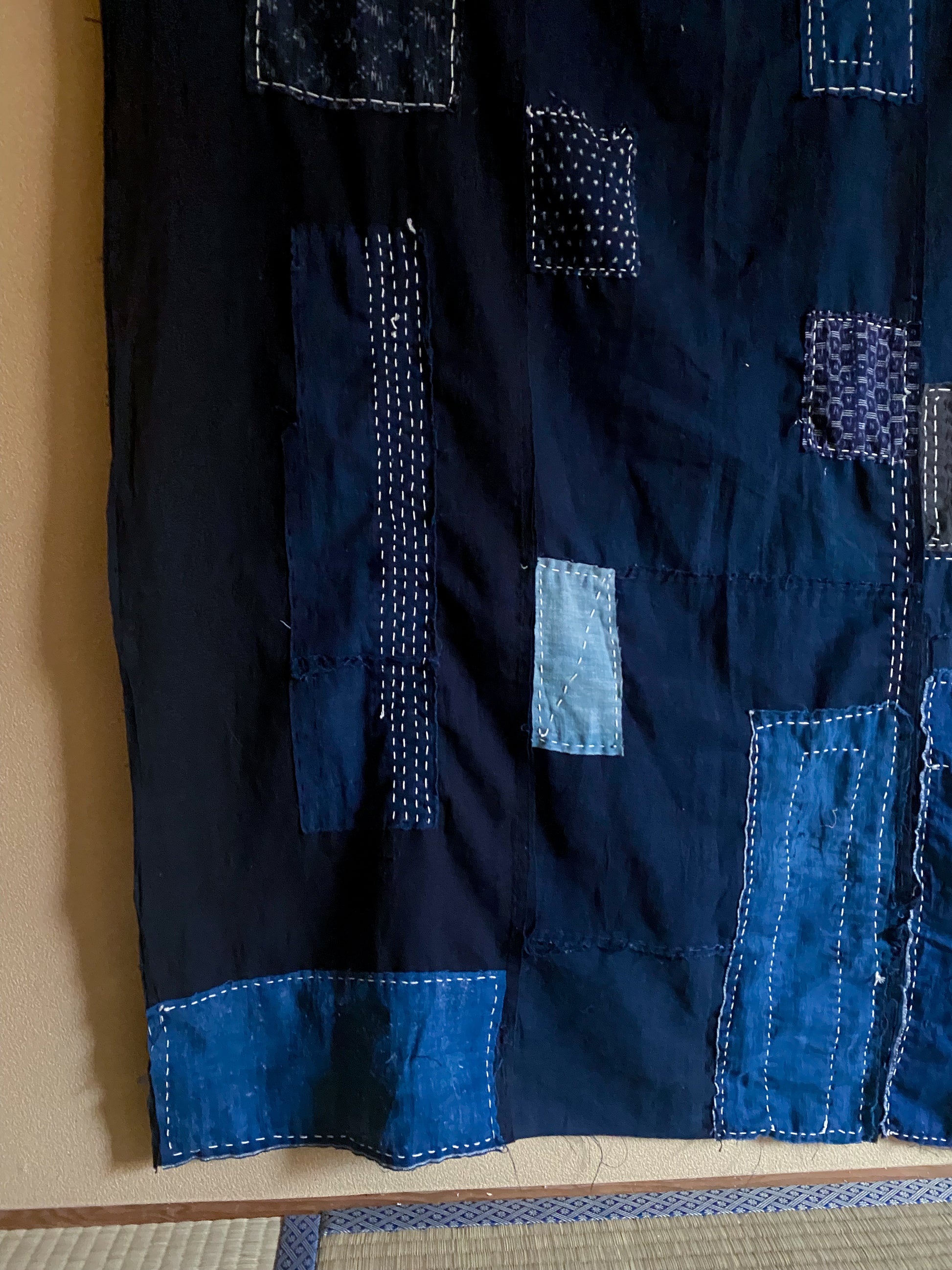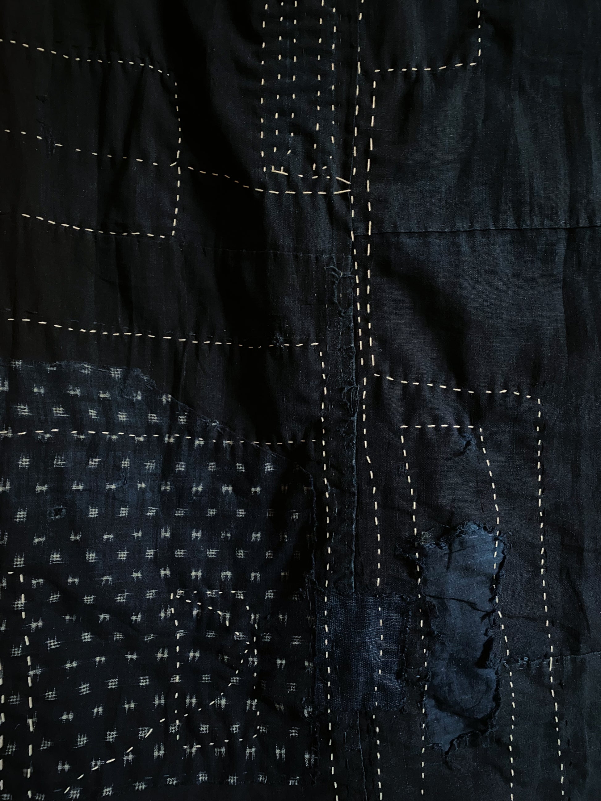 This particular fabric was used as a futonji, a cover on top of the traditional Japanese bedding containing 3 rows of handspun cotton. Due to its many repairs it has been used frequently and passed over from generation to generation.
