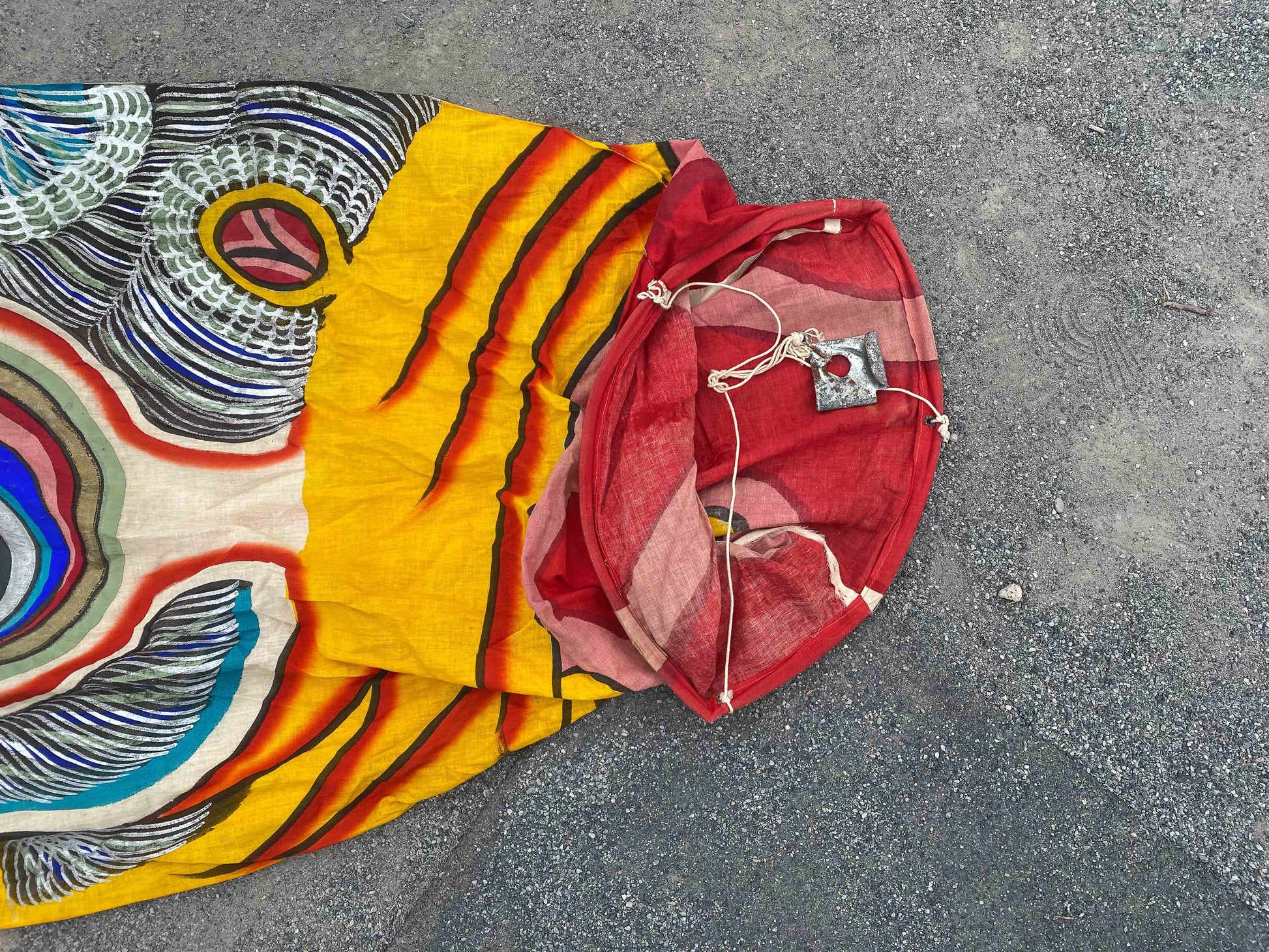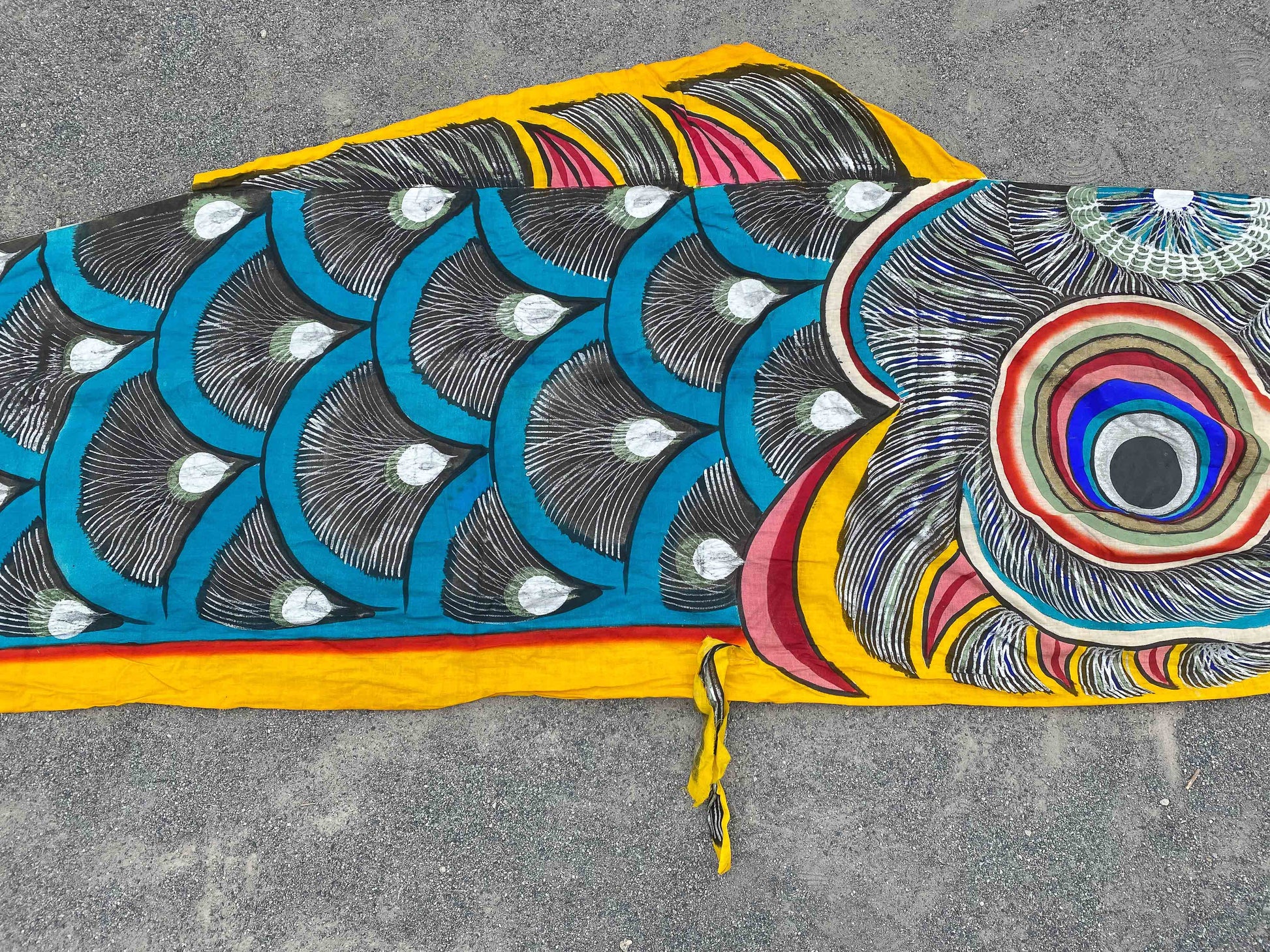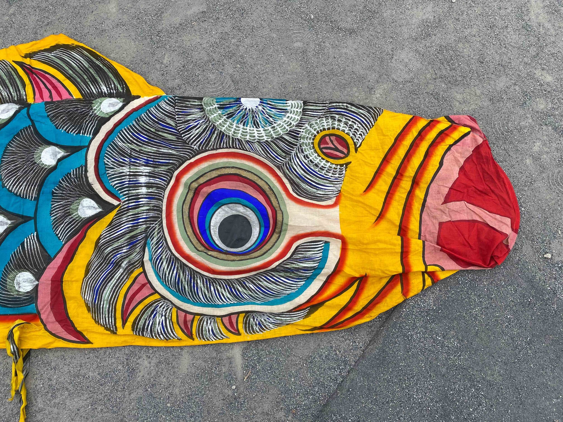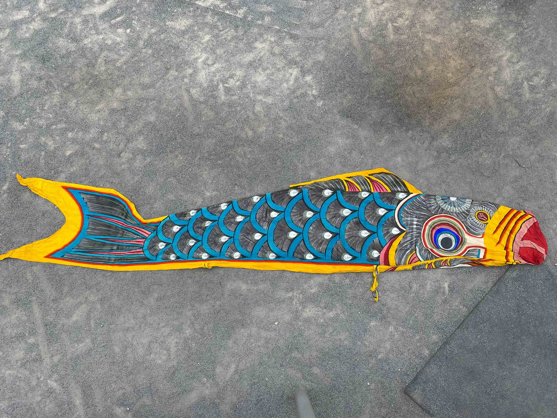 Unique vintage Showa era koinobori streamer, entirely made out of cotton which is very rare nowadays. This carp streamer is beautifully hand-painted with so much detail and made in the 1960's, not being produced anymore.