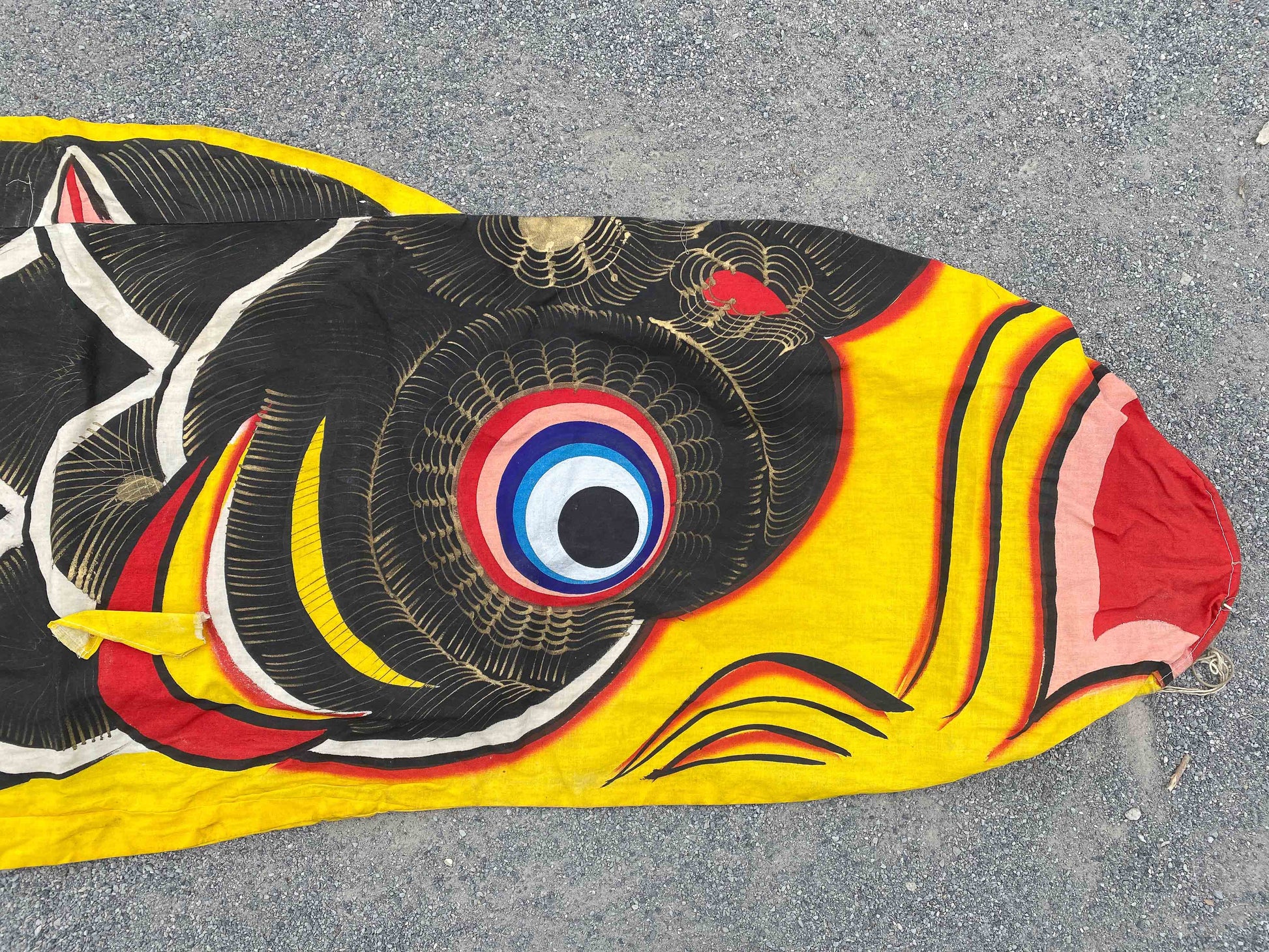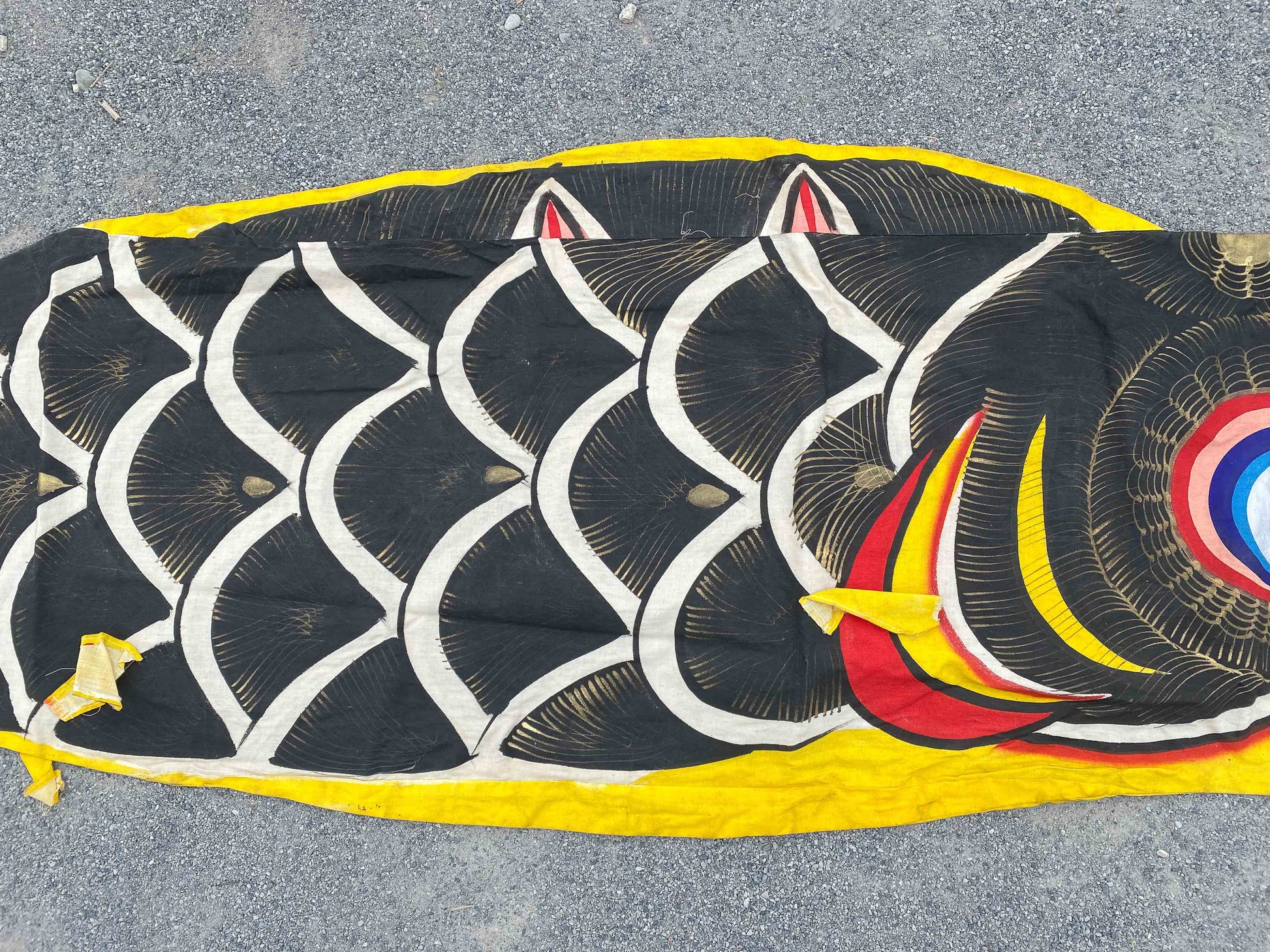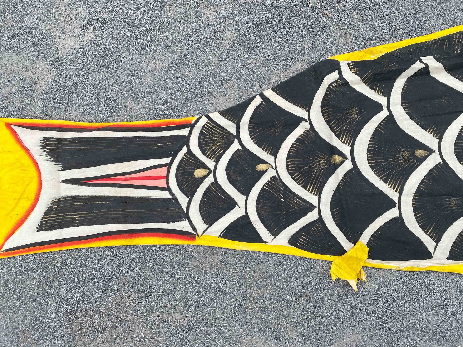 Beautiful vintage Showa era koinobori streamer, entirely made out of cotton which is very rare nowadays. This carp streamer is beautifully hand-painted with so much detail and made in the 1980's, not being produced anymore.